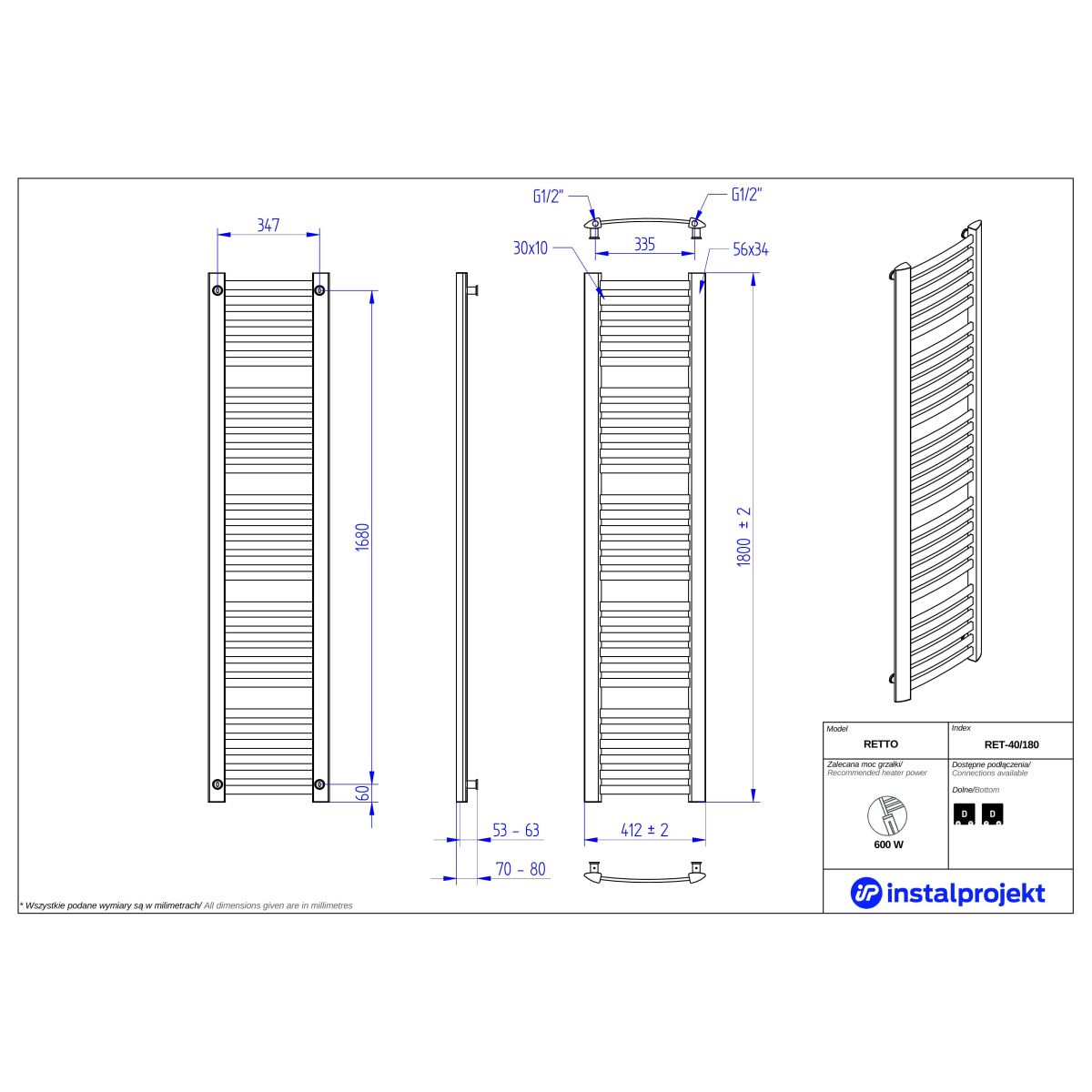 Der Badheizkörper Instal Projekt Retto RET-40/180 vereint minimalistisches Design, elegante Verarbeitung und hohe Heizleistung. Die schlanke Konstruktion mit dreieckigen Kollektoren und horizontalen Profilen verleiht ihm ein modernes Aussehen, während die Oberfläche in Seidenweiß (C35) seine Ästhetik subtil unterstreicht. Ideal für geräumige Badezimmer und Innenräume, in denen sowohl Effizienz als auch Stil wichtig sind.