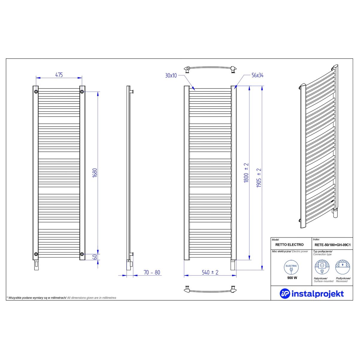 Retto Electro ist ein Badheizkörper, der mit einem elektrischen Heizelement betrieben wird. Dank dieser Technologie funktioniert er immer, wenn er gebraucht wird – man muss ihn nur an den Strom anschließen. Dank der patentierten Heiztechnologie verbraucht er nur wenig Energie und erzeugt gleichzeitig effiziente Wärme. Dies ist eine ideale Lösung, insbesondere in Wohnungen ohne Zentralheizung, in denen Fußboden- oder Deckenheizungen vorhanden sind, aber kein Platz zum Trocknen von Textilien vorhanden ist. Die Montage des Heizkörpers ist einfach und kann problemlos selbst durchgeführt werden. Darüber hinaus kann er bei einem Umzug oder einer Renovierung leicht transportiert und an einem neuen Ort montiert werden. Es handelt sich um eine elegante Lösung, die Komfort und Energieeinsparungen garantiert.