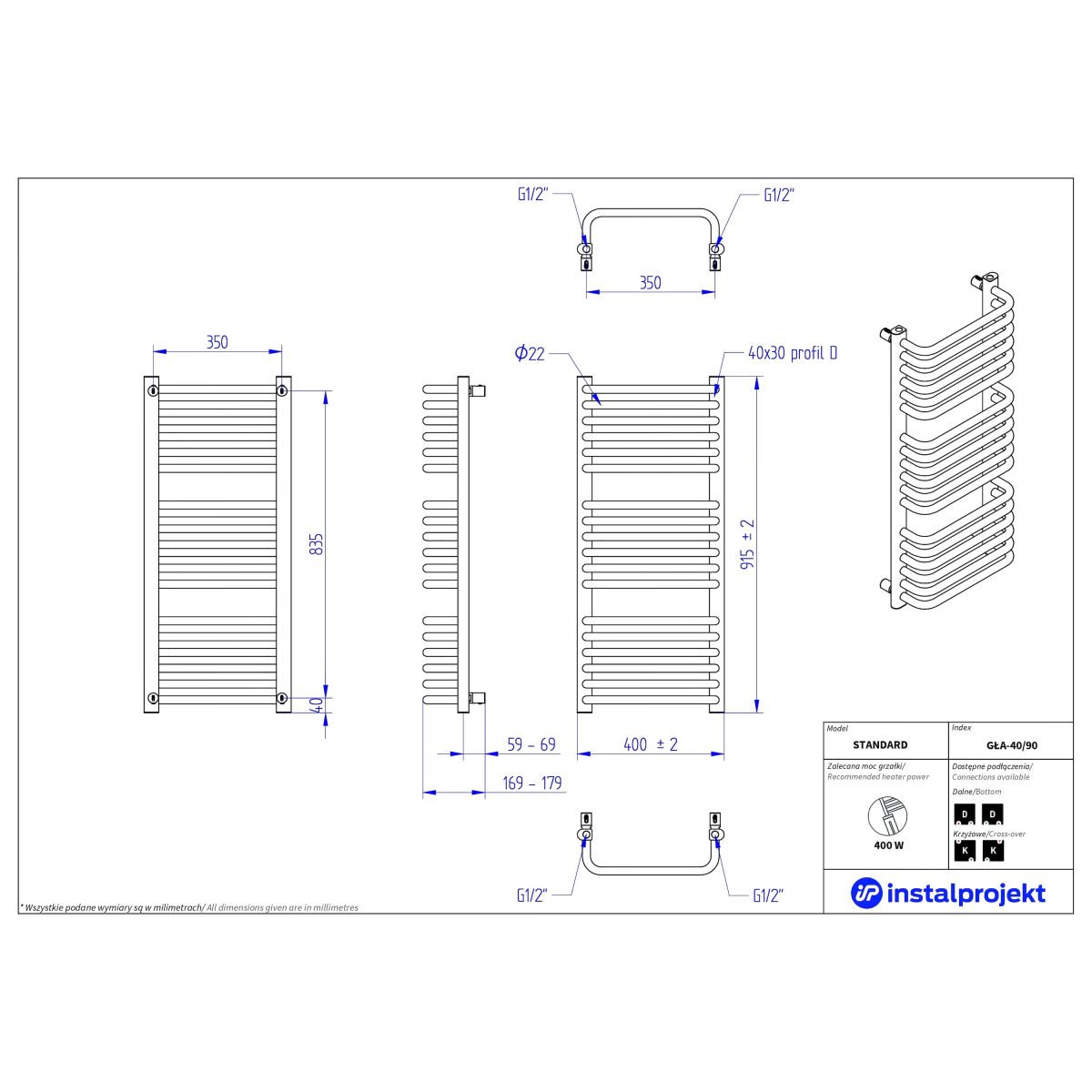 Instal Projekt Standard Badezimmerheizkörper Leiter 91.5x40 cm weiß GŁA-40/90