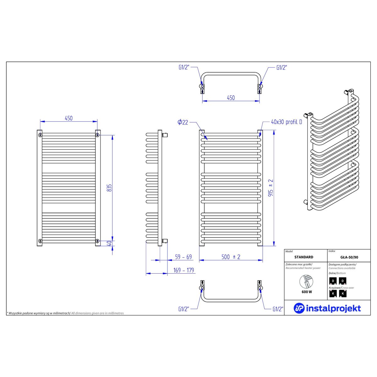 Instal Projekt Standard Badezimmerheizkörper Leiter 91x50 cm weiß GŁA-50/90