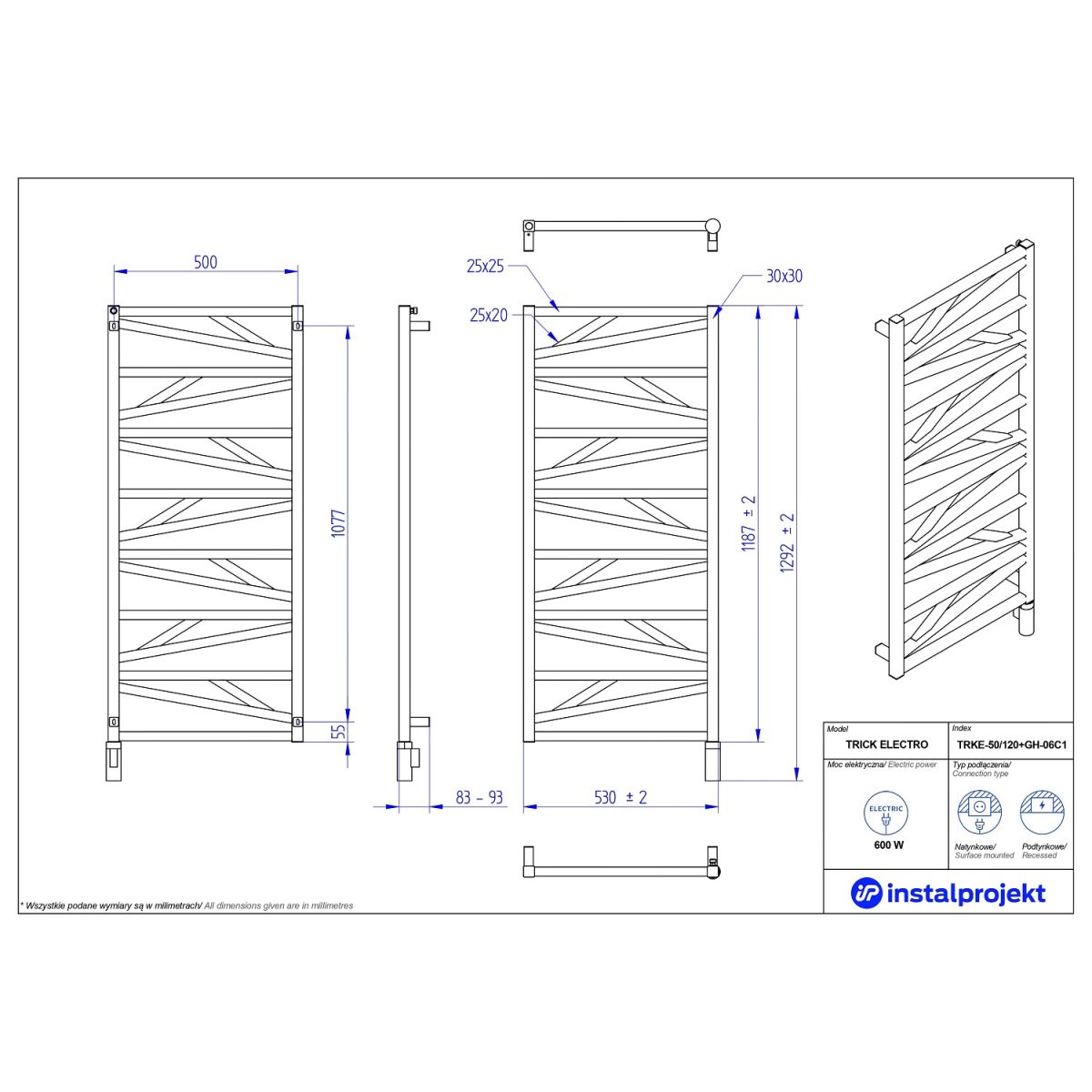 Ein Blick genügt, um die Schönheit des Badheizkörpers Trick Electro, der von der Natur inspiriert ist, voll und ganz zu schätzen. Seine Einzigartigkeit verdankt er der besonderen Anordnung der Profile, die wie Adern auf einem Blatt subtile und faszinierende Linien bilden. Das ist außergewöhnliche Eleganz in einzigartiger Form. Der Heizkörper passt perfekt in moderne Einrichtungen, in denen Harmonie und die Verehrung der Natur dominieren. Er ist in zwei Farben erhältlich – Schwarz und Weiß, in matter oder glänzender Ausführung. Es besteht auch die Möglichkeit, die Farbe Schwarz in den Varianten „Struktur” zu wählen, die leicht an Grautöne erinnern, oder gegen Aufpreis einen Heizkörper in einer der 23 Farben aus der Instal Projekt-Palette zu bestellen.