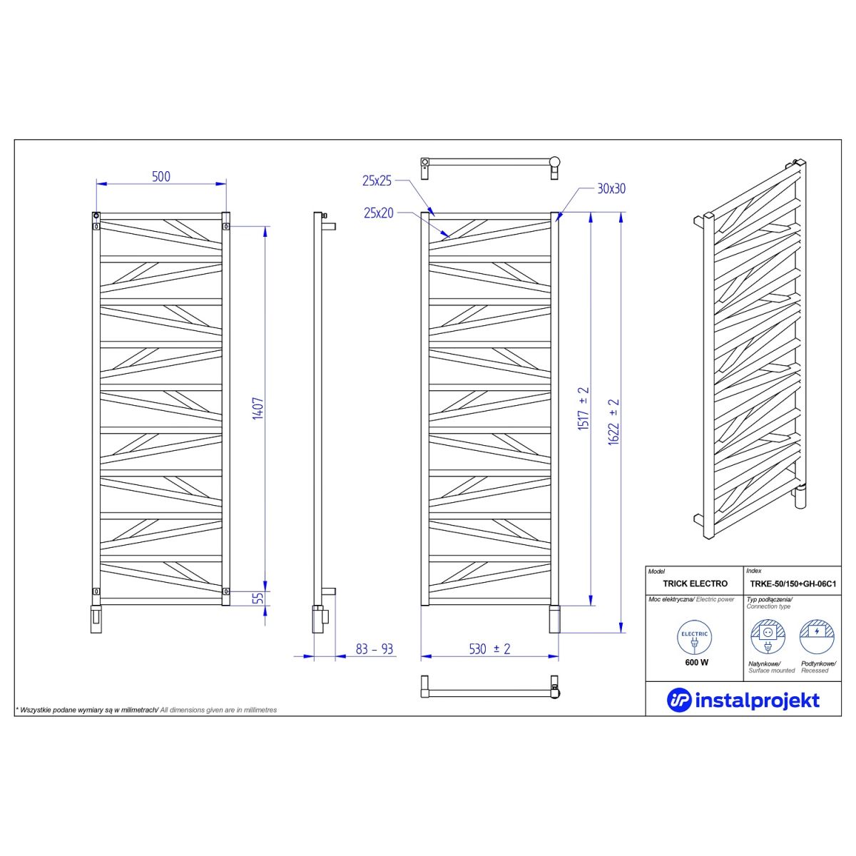 Ein Blick genügt, um die Schönheit des Badheizkörpers Trick Electro, der von der Natur inspiriert ist, voll und ganz zu schätzen. Seine Einzigartigkeit verdankt er der besonderen Anordnung der Profile, die wie Adern auf einem Blatt subtile und faszinierende Linien bilden. Das ist außergewöhnliche Eleganz in einzigartiger Form. Der Heizkörper passt perfekt in moderne Einrichtungen, in denen Harmonie und die Verehrung der Natur dominieren. Er ist in zwei Farben erhältlich – Schwarz und Weiß, in matter oder glänzender Ausführung. Es besteht auch die Möglichkeit, die Farbe Schwarz in den Varianten „Struktur” zu wählen, die leicht an Grautöne erinnern, oder gegen Aufpreis einen Heizkörper in einer der 23 Farben aus der Instal Projekt-Palette zu bestellen.