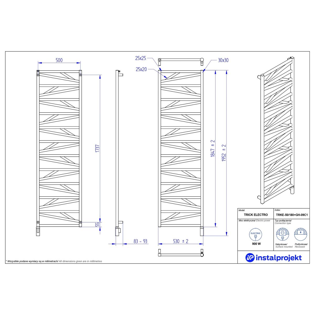 Ein Blick genügt, um die Schönheit des Badheizkörpers Trick Electro, der von der Natur inspiriert ist, voll und ganz zu schätzen. Seine Einzigartigkeit verdankt er der besonderen Anordnung der Profile, die wie Adern auf einem Blatt subtile und faszinierende Linien bilden. Das ist außergewöhnliche Eleganz in einzigartiger Form. Der Heizkörper passt perfekt in moderne Einrichtungen, in denen Harmonie und die Verehrung der Natur dominieren. Er ist in zwei Farben erhältlich – Schwarz und Weiß, in matter oder glänzender Ausführung. Es besteht auch die Möglichkeit, die Farbe Schwarz in den Varianten „Struktur” zu wählen, die leicht an Grautöne erinnern, oder gegen Aufpreis einen Heizkörper in einer der 23 Farben aus der Instal Projekt-Palette zu bestellen.
