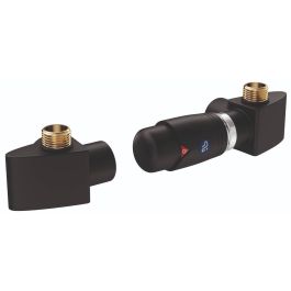 Spezielle Ventilgarnitur für RETTO-Heizkörper von Instal Projekt, geeignet für die Montage in Anlagen mit Unterversorgung. Für die Versorgung im linken Verteiler ist das rechte Ventil zu montieren, für die Versorgung im rechten Verteiler das linke Ventil. Der elektrische Heizkörper ist im Rücklaufkollektor der Anlage zu montieren. Das Set ermöglicht eine präzise Temperaturregelung und einen zuverlässigen Betrieb bei hohen Temperaturen und hohem Druck.