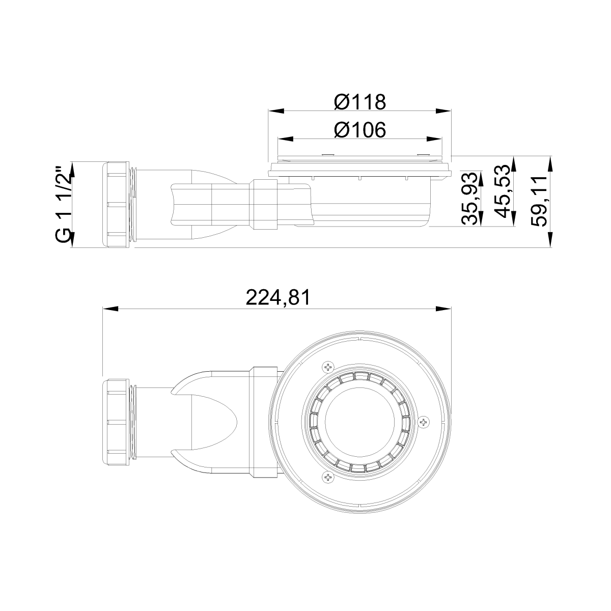 - Speziell für Duschwannen mit einem Abflussloch von 90 mm