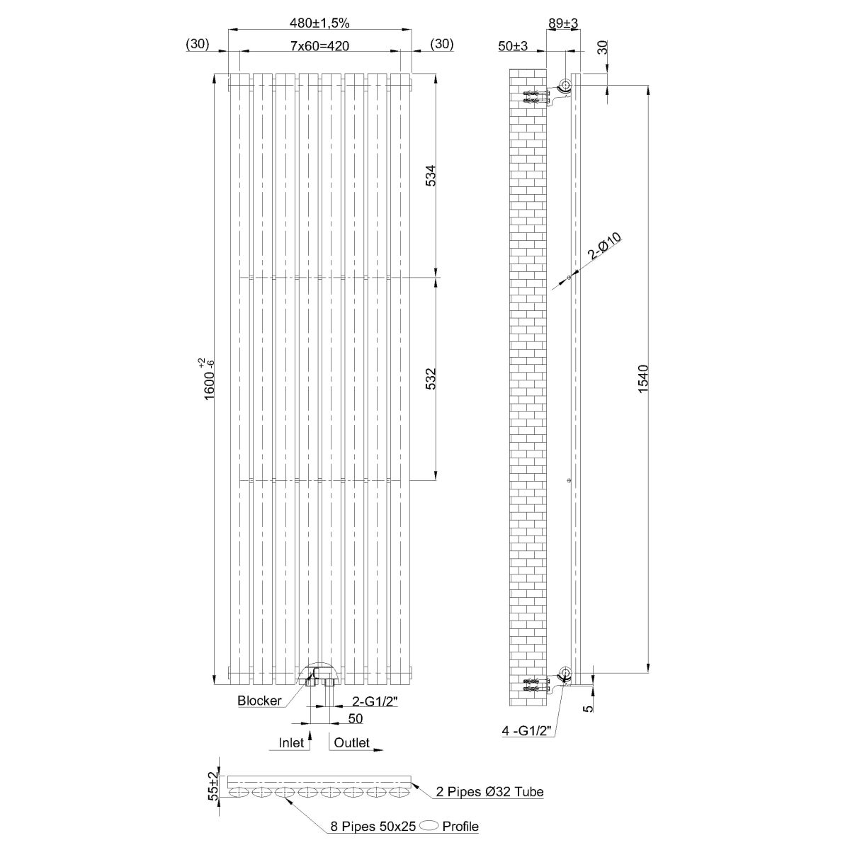 Invena Badezimmerheizkörper dekorativ 160x48 cm weiß UG-10-B16