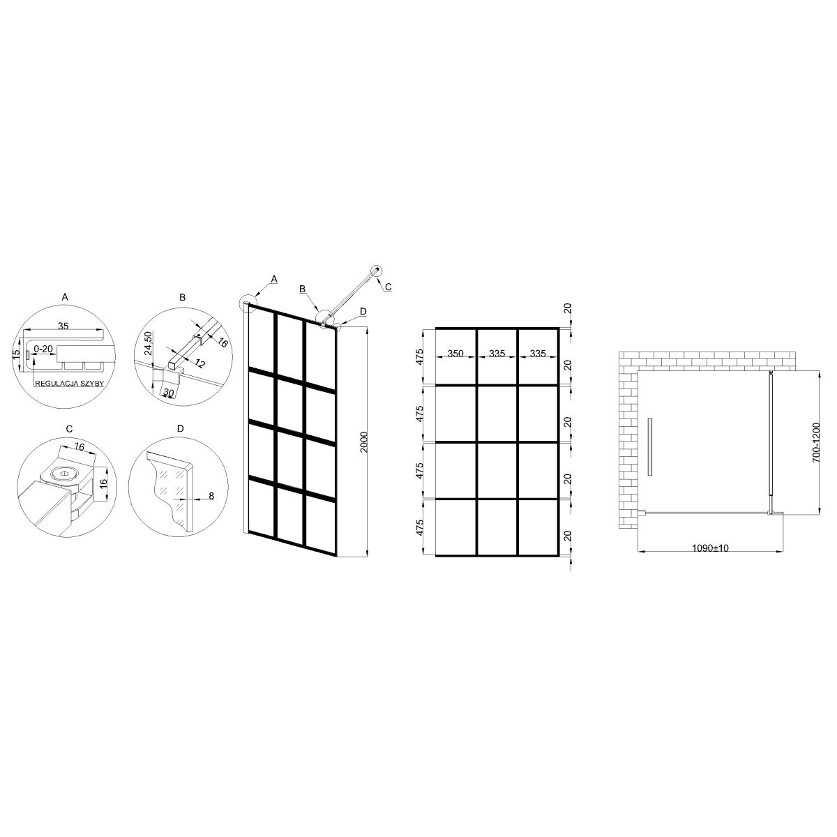 - Verstellbares Teleskopprofil: Die Möglichkeit, die Tiefe der Kabine im Bereich von 70 bis 120 cm zu verstellen und sie in jedem beliebigen Winkel zu montieren, ermöglicht eine perfekte Anpassung an den Badezimmerraum