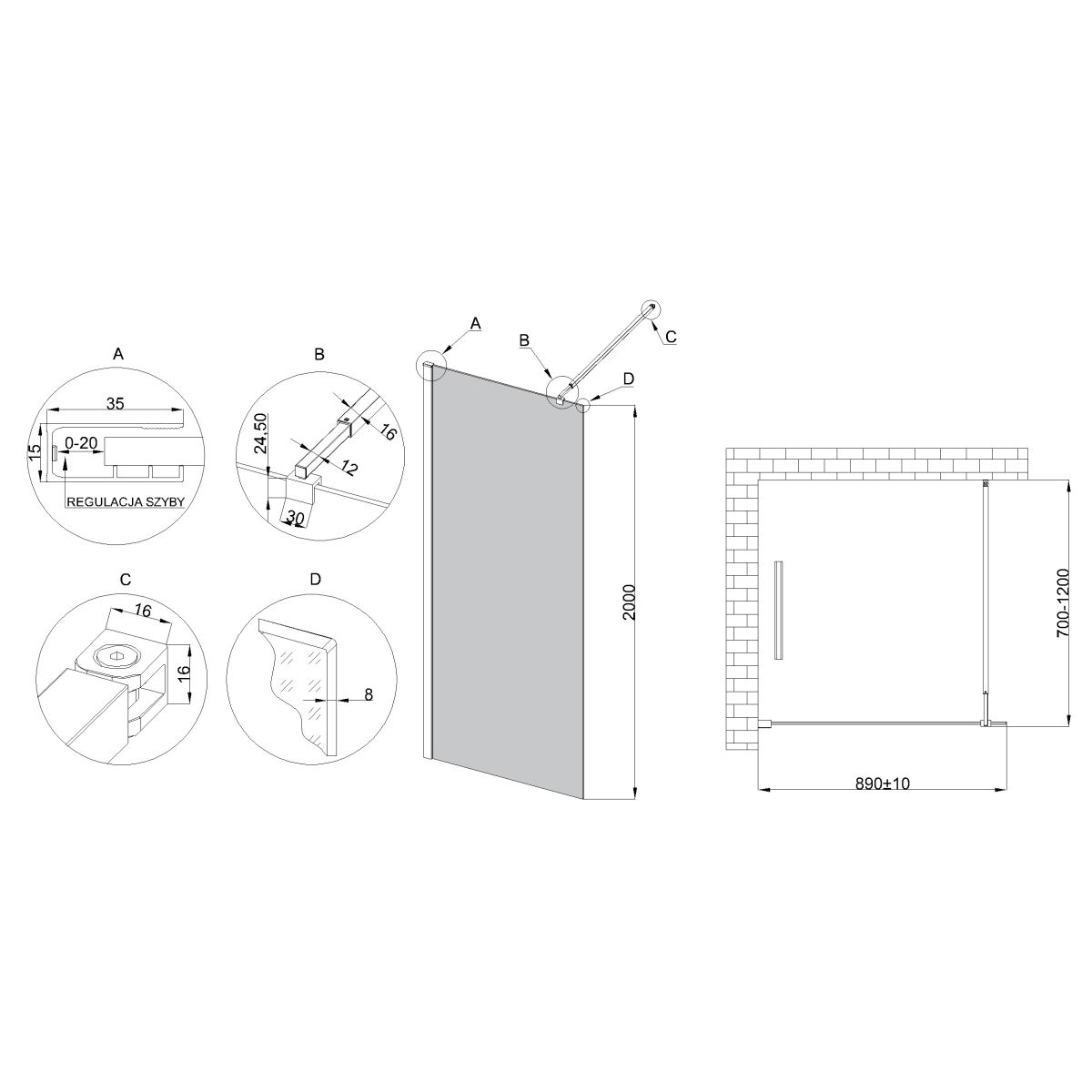 - Teleskopprofil: Die Tiefeneinstellung der Kabine von 70 bis 120 cm und die Möglichkeit der Montage in jedem beliebigen Winkel ermöglichen eine perfekte Anpassung an verschiedene Badezimmerlayouts