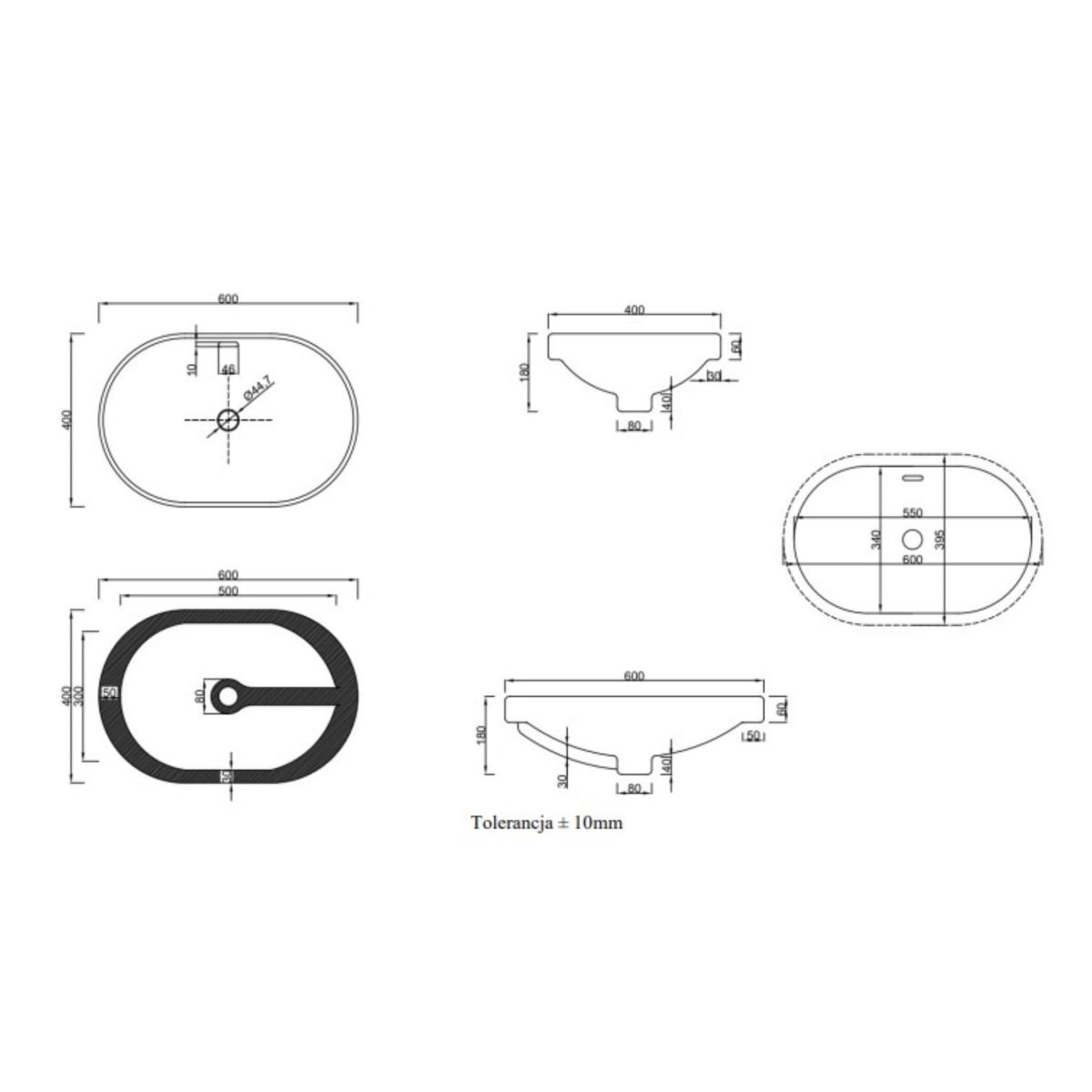 Invena Egina Waschbecken 60x40 cm oval Einbauwaschbecken weiß CE-52-060
