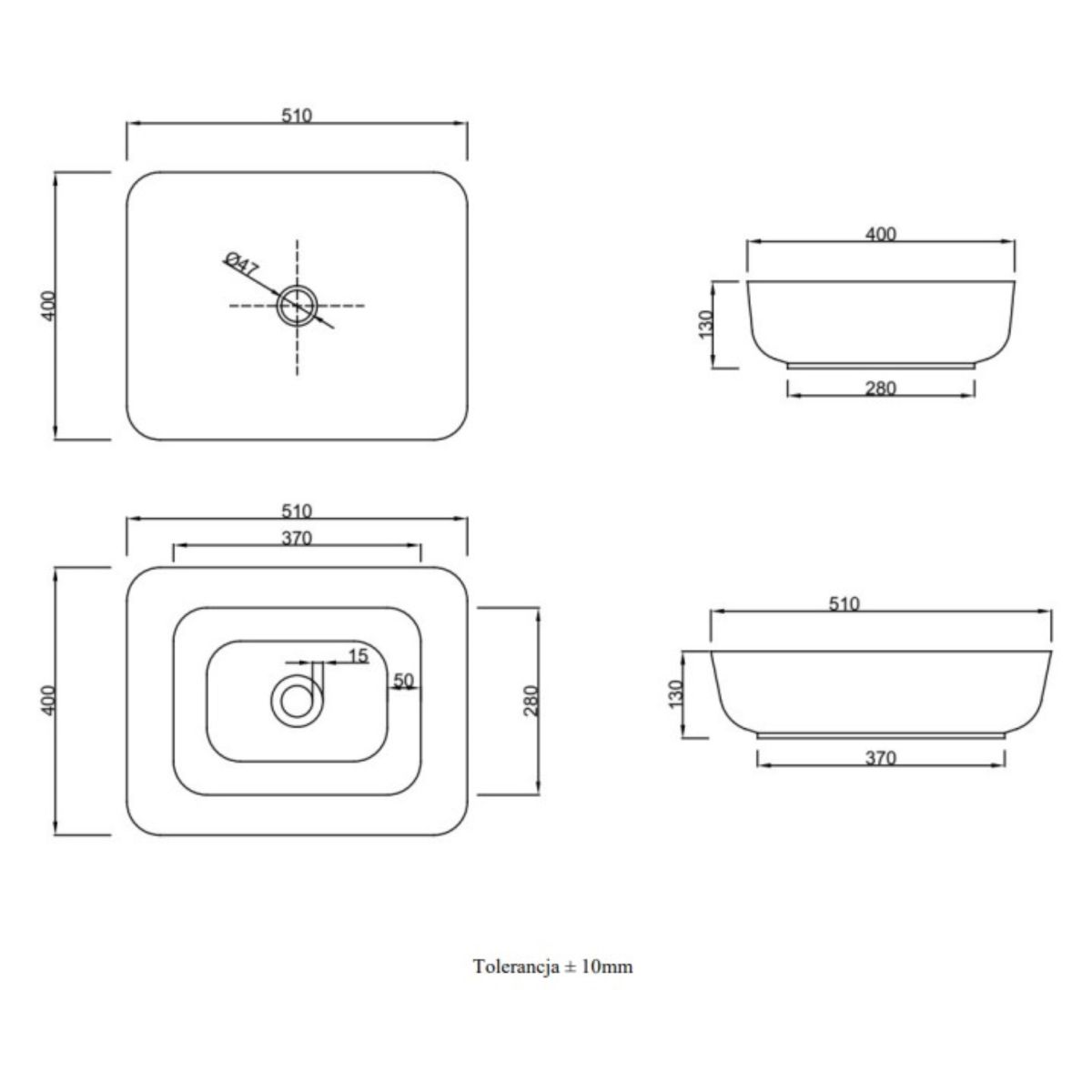 Invena Florina Waschbecken 51x40 cm rechteckig Aufsatzwaschbecken weiß CE-40-001