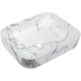 Invena Florina Waschbecken 51x40 cm rechteckig Aufsatzwaschbecken weiß-grauer Stein CE-40-706