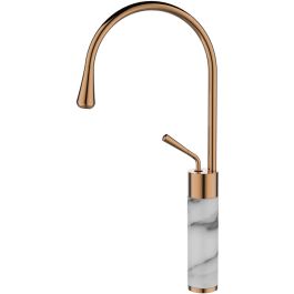 Die Waschtischarmatur Gabro wurde als Antwort auf die Erwartungen von Kunden entwickelt, die ihr Badezimmer im Vintage-Stil, aber in einer modernen Interpretation gestalten möchten. Sie ist eine Kombination aus Kupfer und Marmor. Der Kupferauslauf wurde mit einem weiß-grauen Marmorkörper der Armatur kombiniert. Der langlebige Keramikmischer und die hohe Verarbeitungsqualität garantieren eine lange Lebensdauer der Armatur. Die Armatur trägt zusammen mit dem Aufsatzwaschbecken zur Gestaltung eines funktionalen Waschbeckenbereichs bei.