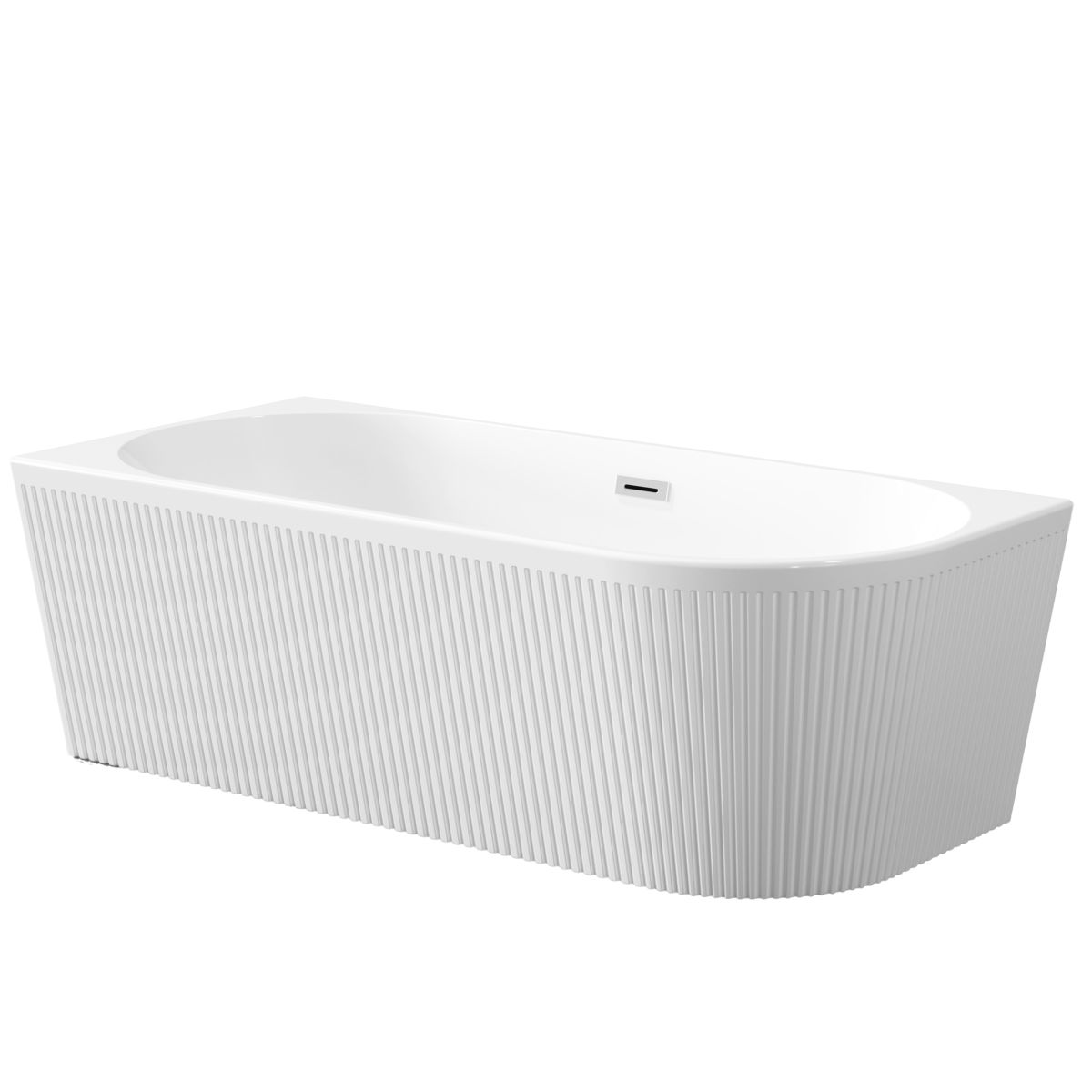 Eine elegante und funktionale freistehende Wandbadewanne, ideal für moderne Badezimmer. Ihr einzigartiges, geriffeltes Design verleiht dem Innenraum Charakter und schafft gleichzeitig eine Atmosphäre der Entspannung und des Luxus.