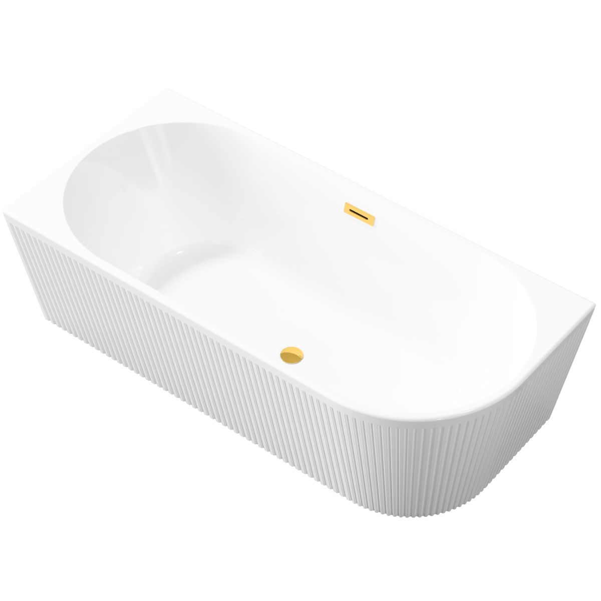 Die freistehende, geriffelte Wandbadewanne Glamour ist ein Symbol für Luxus und raffinierten Stil. Die linksseitige Konstruktion in Kombination mit der geriffelten Oberfläche verleiht ihr einen einzigartigen Charakter und passt perfekt zu modernen und klassischen Innenräumen. Der goldene Siphon unterstreicht die Eleganz und Exklusivität dieses Modells und macht jedes Bad zu einem echten Entspannungsritual.