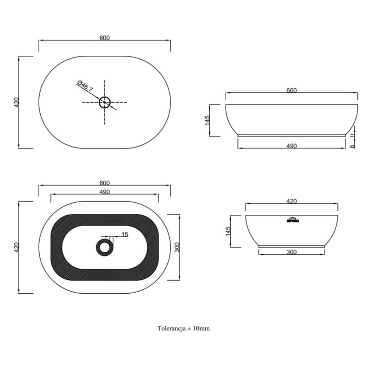 Invena Korfu Waschbecken 60x42 cm oval Aufsatzwaschbecken schwarz CE-34-005