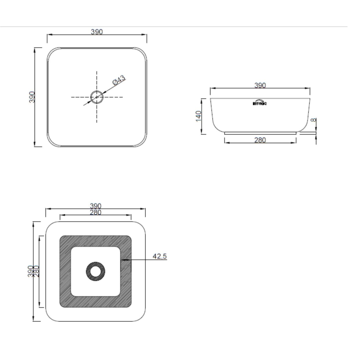 Invena Malaga Waschbecken 39x39 cm quadratisch Aufsatzwaschbecken CE-39-013-W