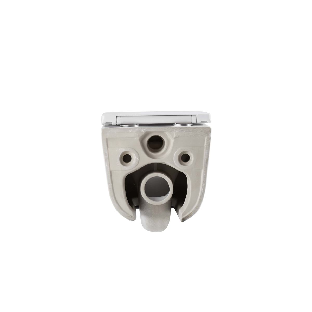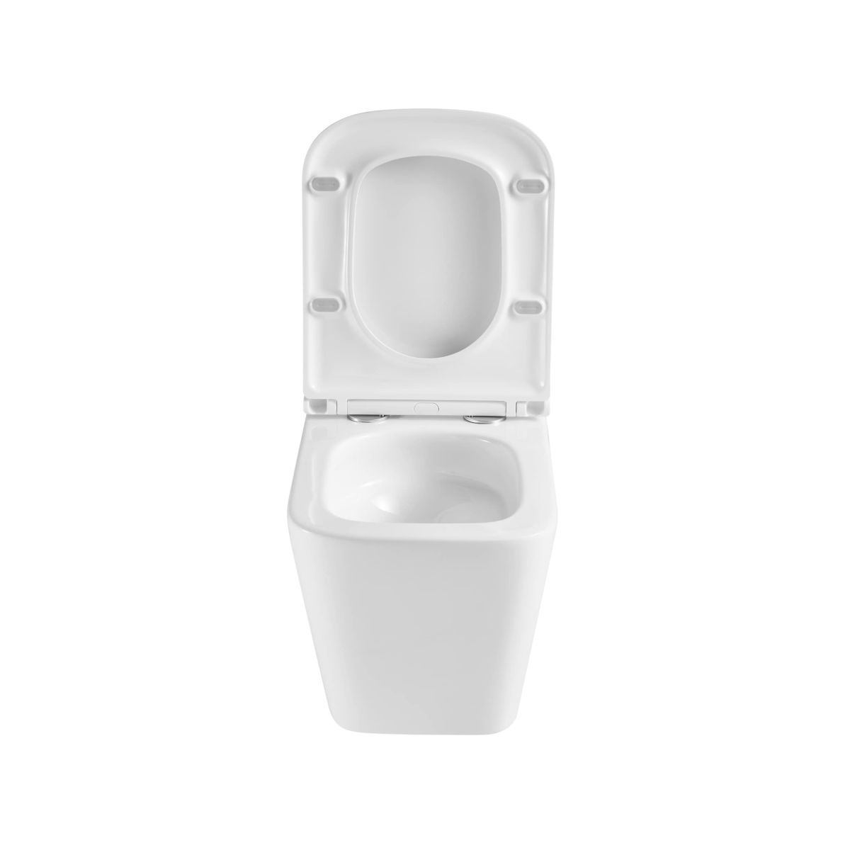Quadratische, hängende Toilettenschüssel mit QFS (Quiet Flushing System) – einem leisen Wirbelspülsystem.