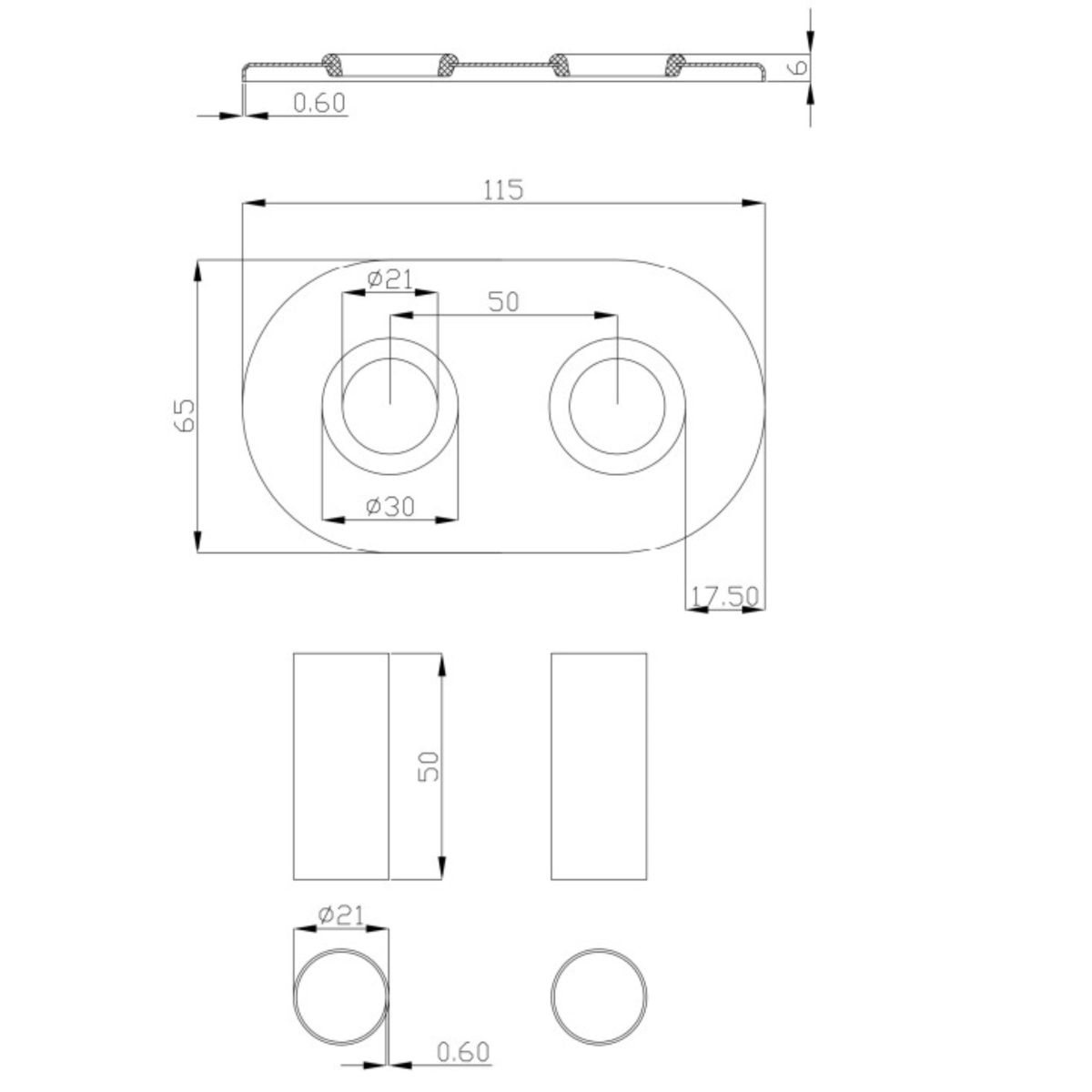 - 2 x Hülsen mit einer Länge von 50 mm