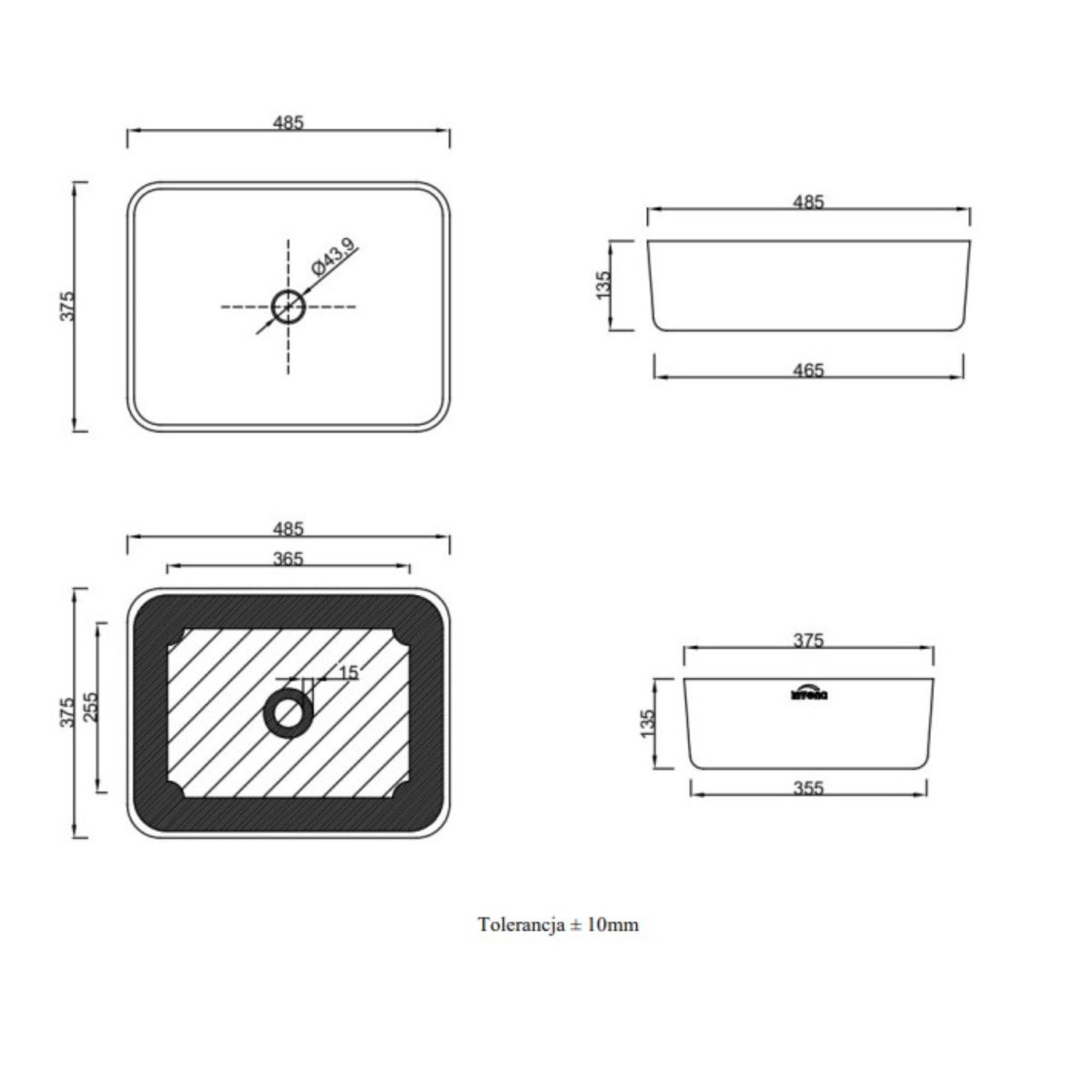 Invena Paros Waschbecken 47.5x37.5 cm rechteckig Aufsatzwaschbecken weiß CE-36-001