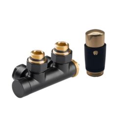 Das exklusive schwarze Thermostat-Set vom Typ Duoplex ist für den Anschluss von dekorativen Badheizkörpern, aber auch für den Anschluss von dekorativen, von unten gespeisten Flachheizkörpern vorgesehen. Es handelt sich um ein reversibles Set, was bedeutet, dass es mit dem Kopf auf der linken oder rechten Seite verwendet werden kann.