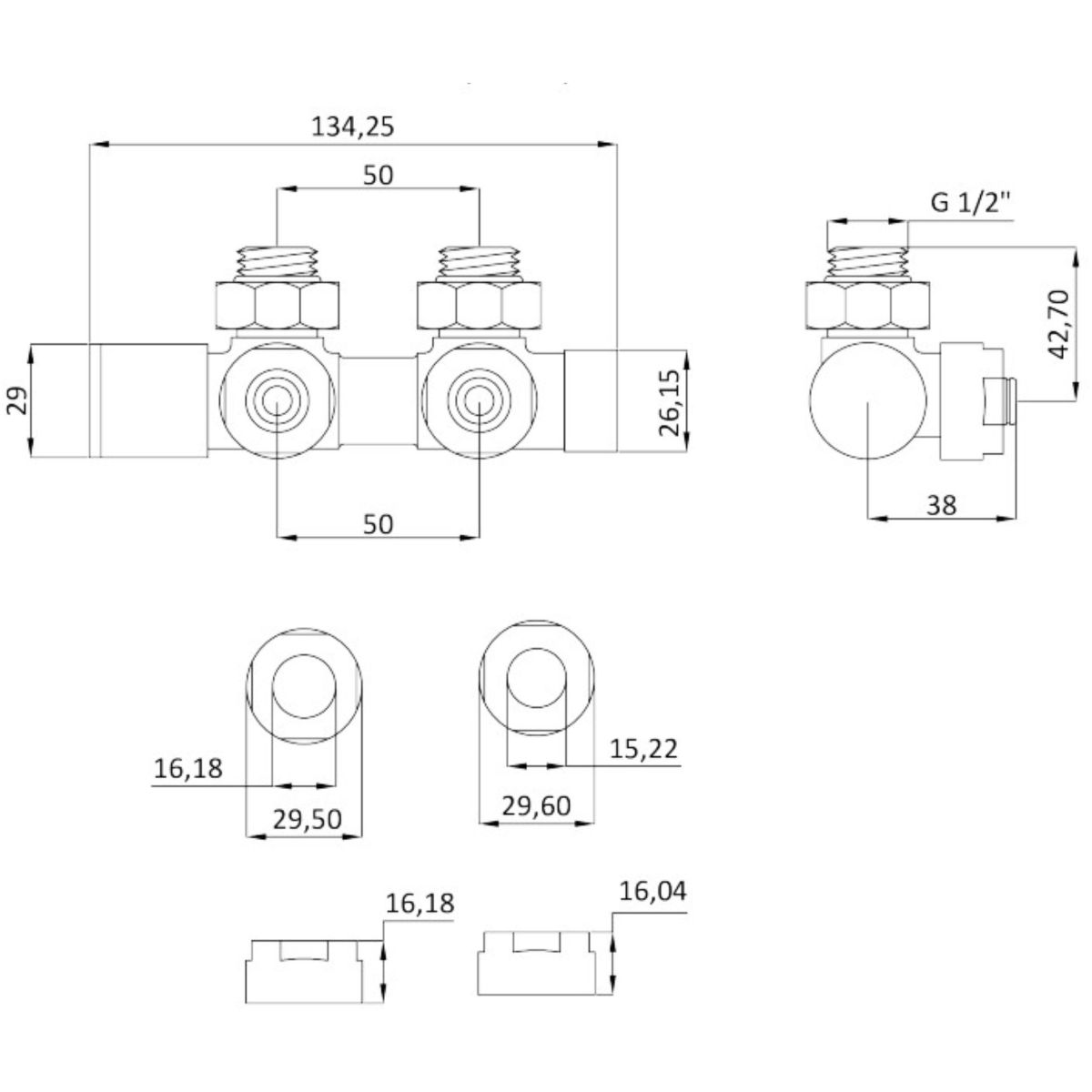 - Anschluss für Heizkörper mit 50 mm Abstand G1/2" mit nicht thermostatischem Regelungselement