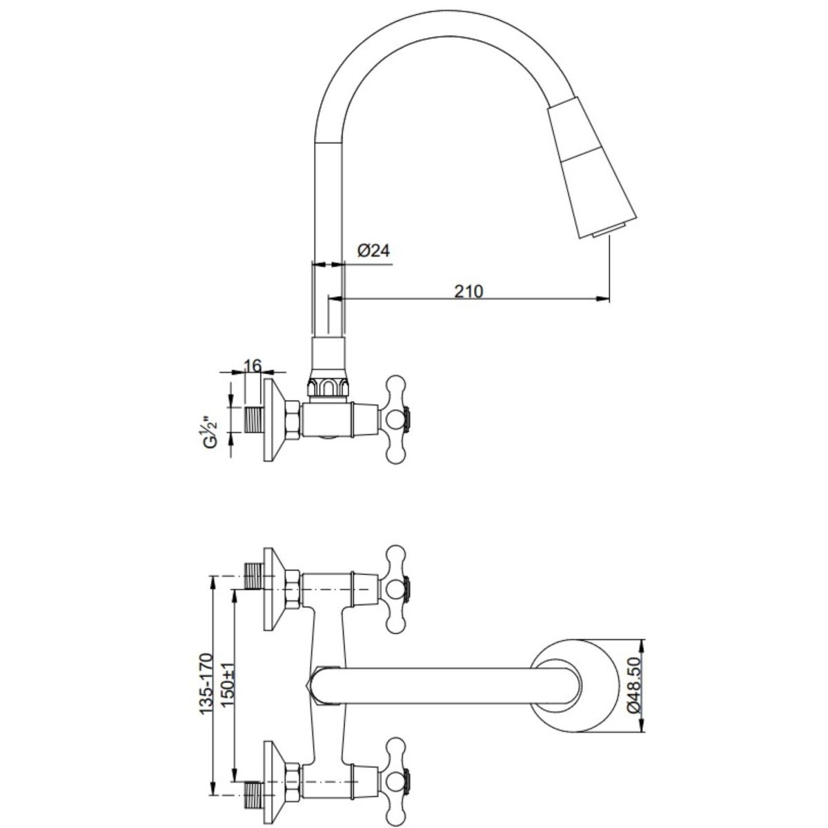 Invena Roma küchenarmatur Wand chrom-schwarz BC-24-E4S
