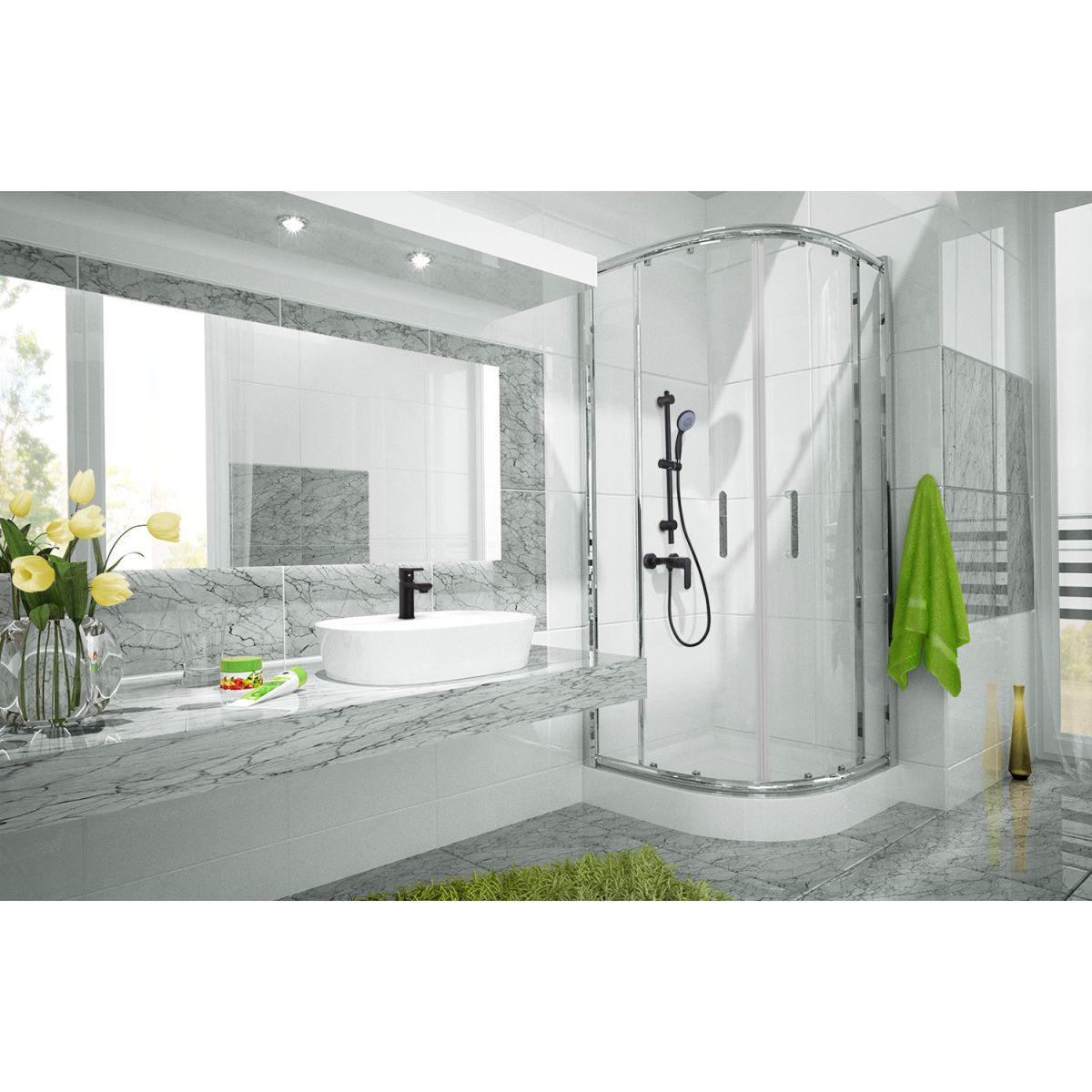 Lieferumfang: Batterie mit Schalter, Duschkopf, Duschkopf, Duschschlauch, Duscharm, Eckanschluss