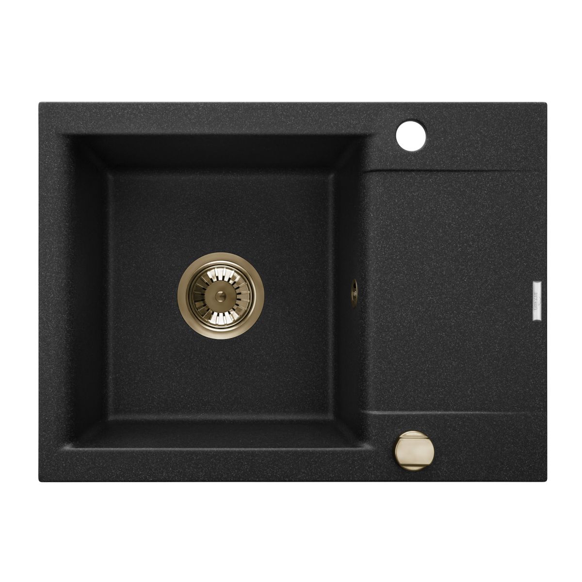 Einbeckige Granitspüle Tesalia schwarz gesprenkelt mit automatischem Siphon