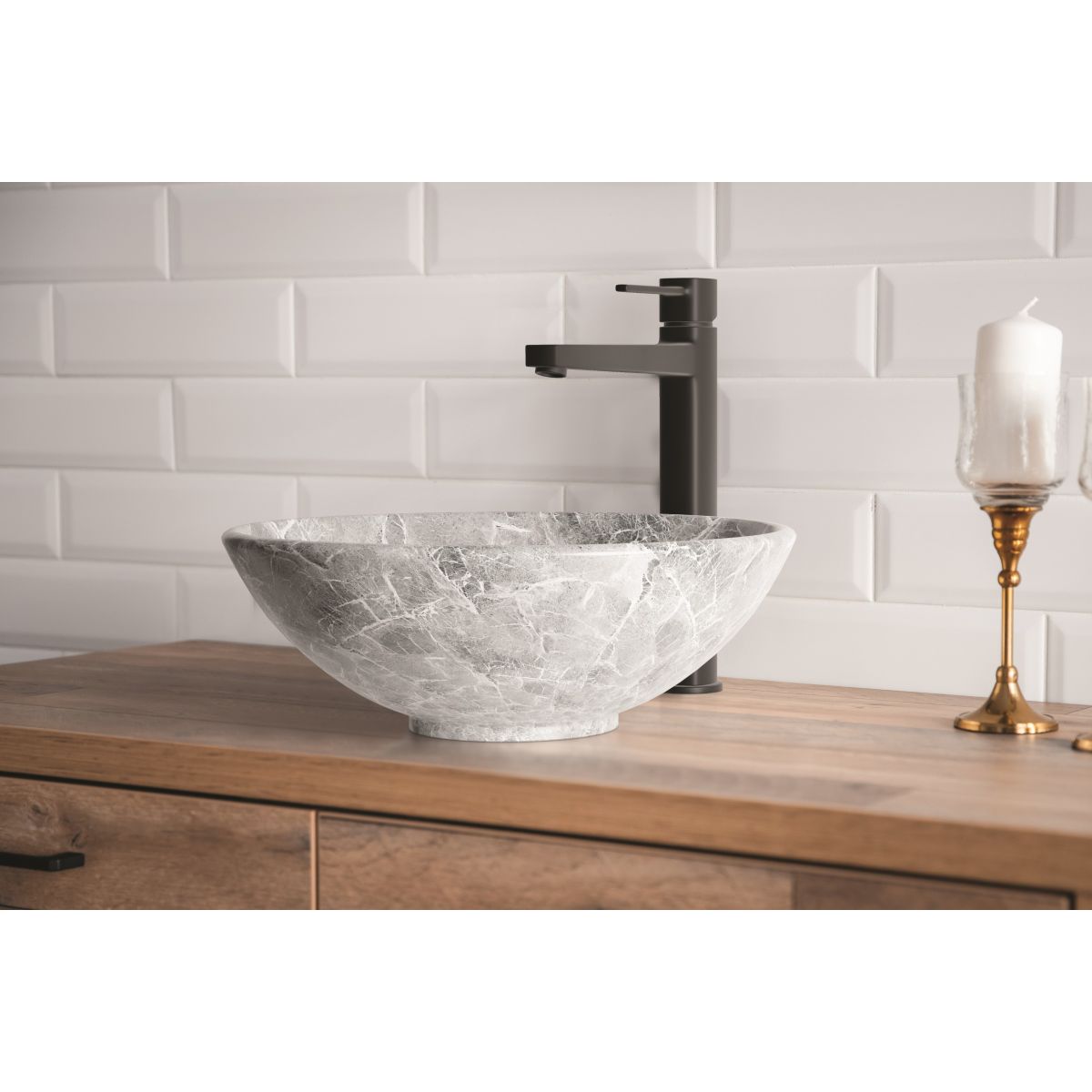Invena Tinos Waschbecken 39.5x39.5 cm rund Aufsatzwaschbecken grauer Stein CE-43-707