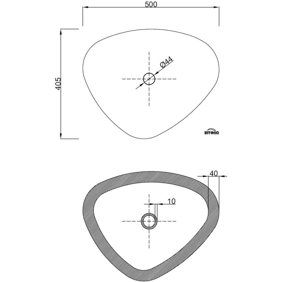Invena Trigono Waschbecken 50x40.5 cm Aufsatzwaschbecken weiß CE-58-001-W