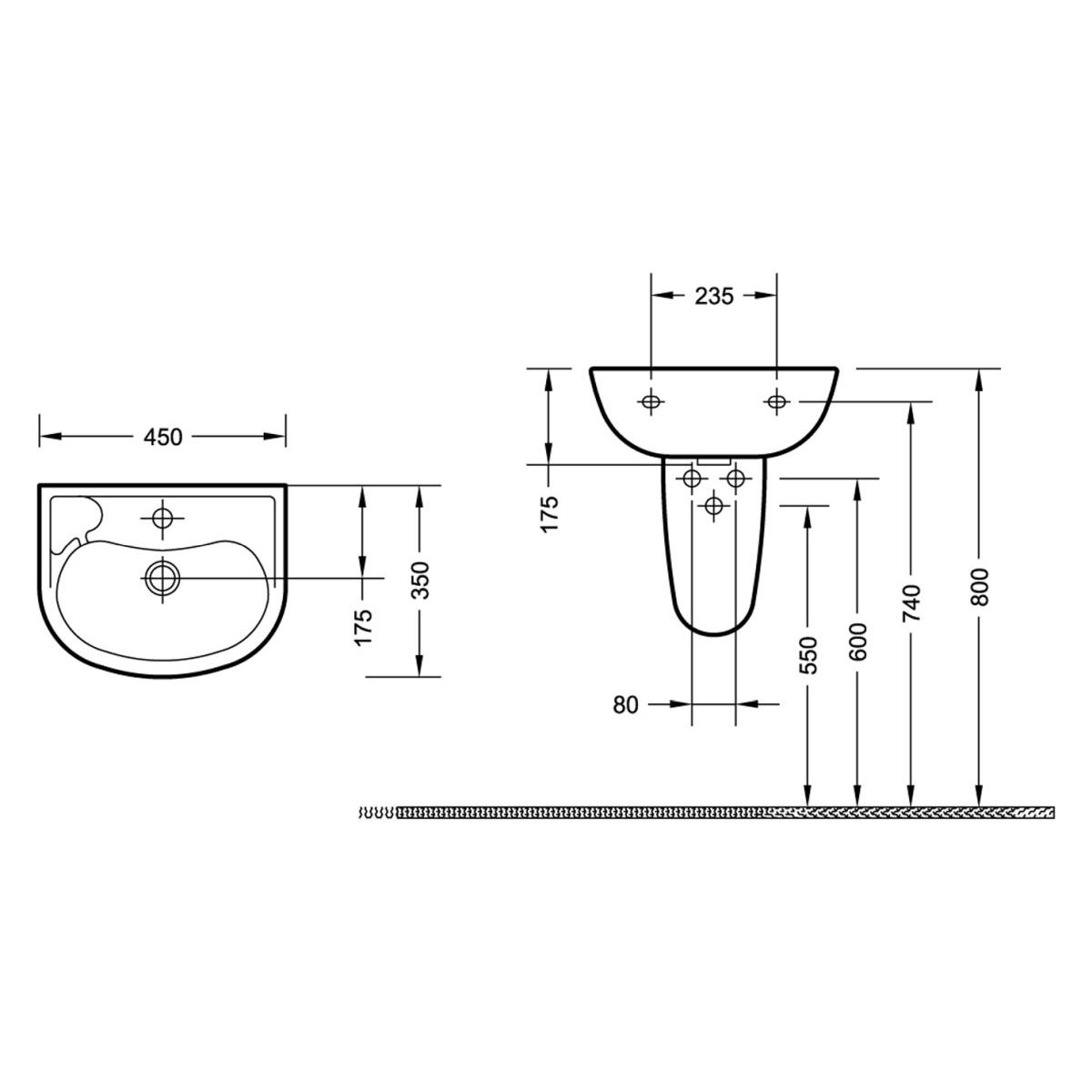 Isvea Small Waschbecken 45x35 cm halbrund Klassisch weiß 10TP71045