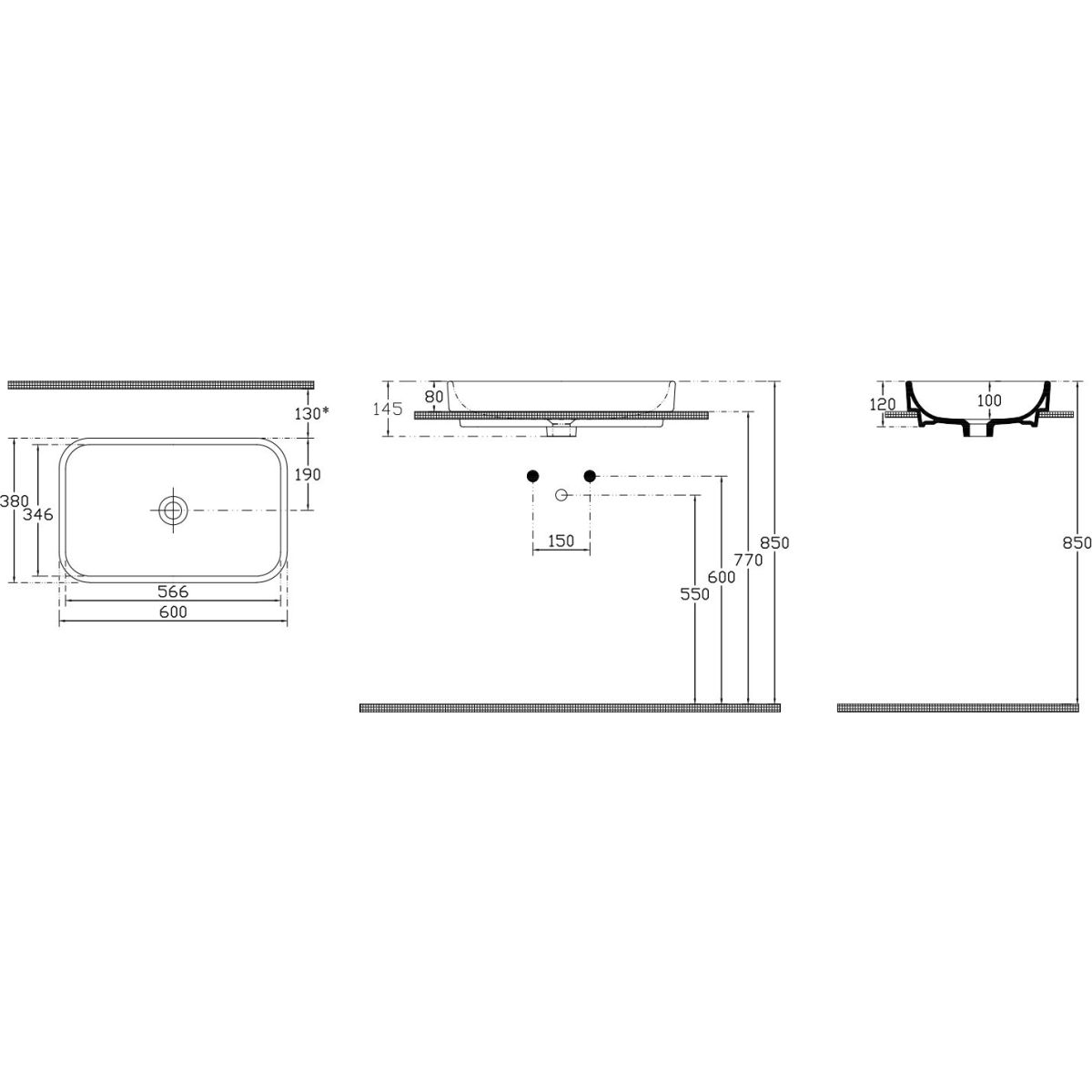 - Montage: Aufsatzmontage/Einbau in die Arbeitsplatte