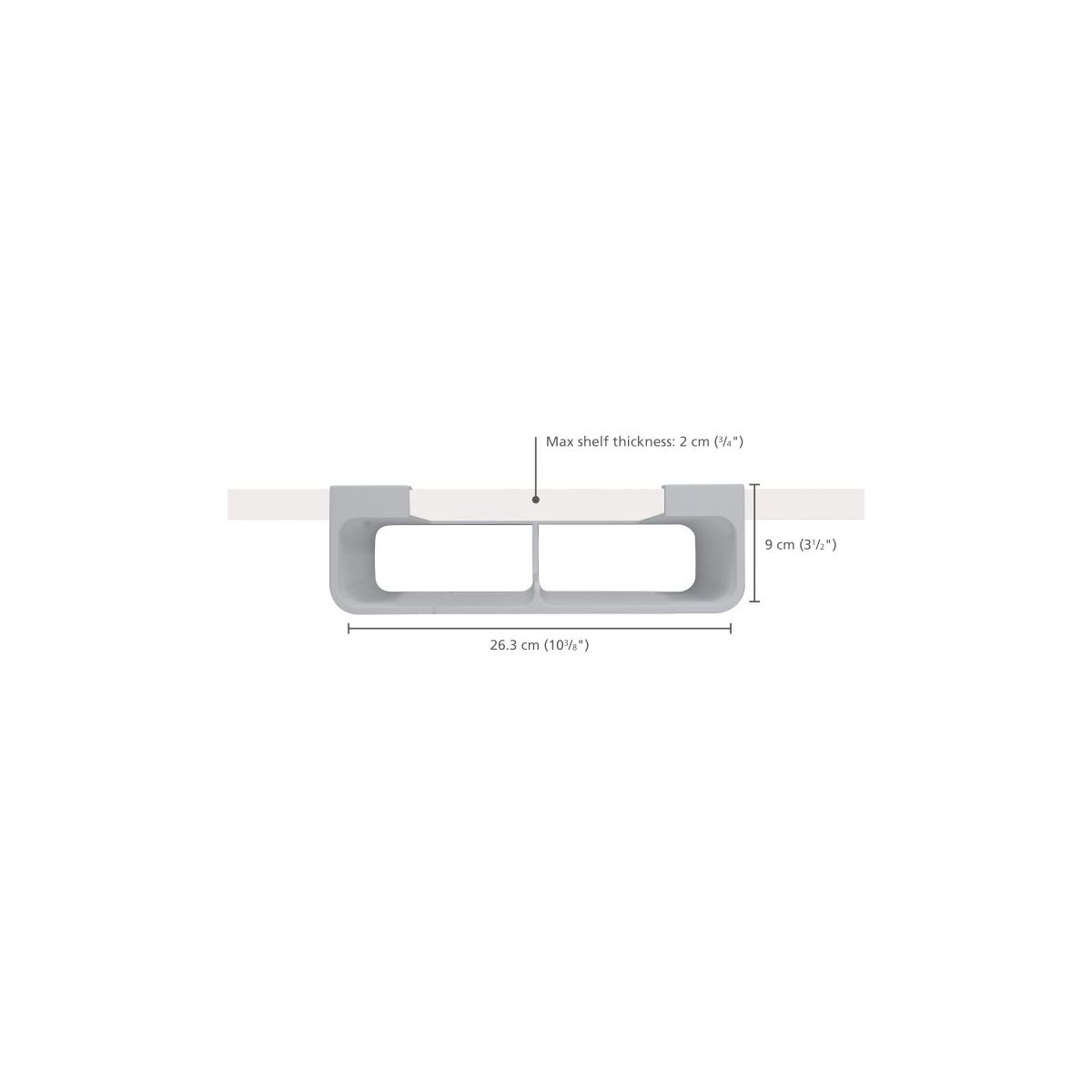 - für Regale mit einer Breite von mindestens 27 cm und einer Dicke von 2 cm geeignet