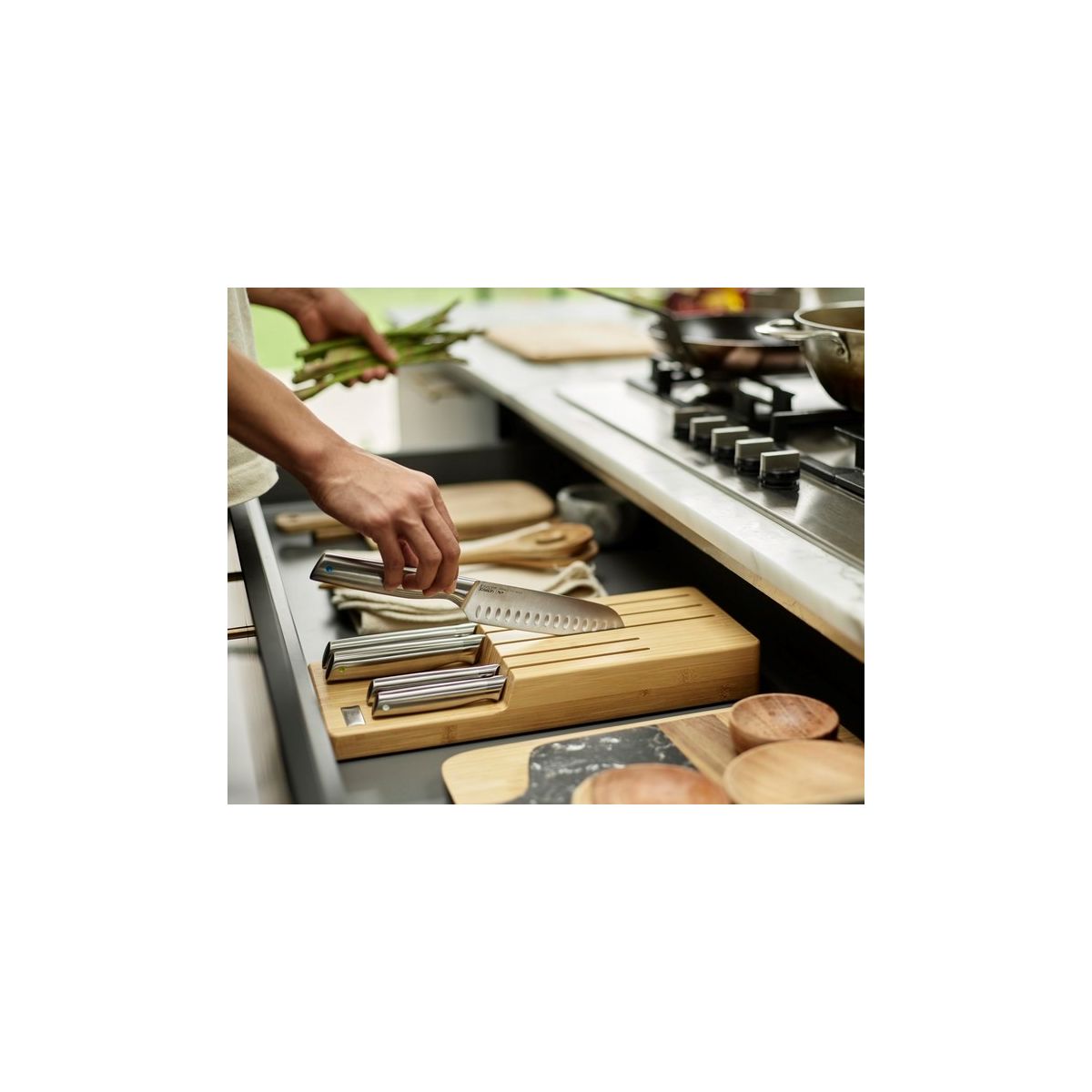 Elevate Steel/Bamboo Messerset im Block von Joseph Joseph: