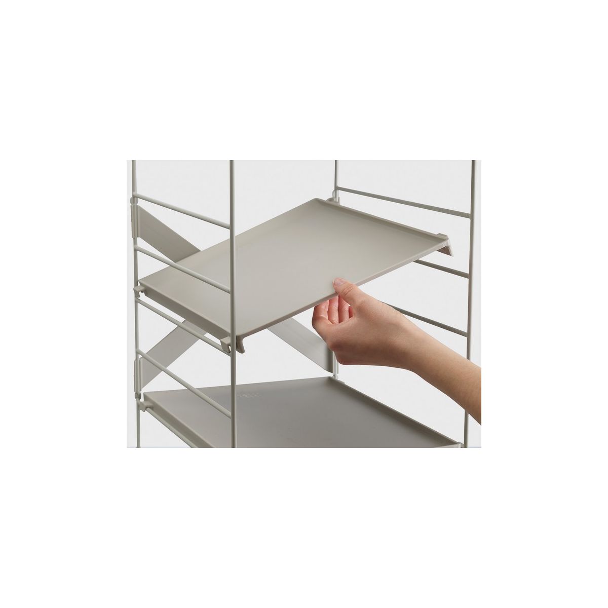 - Wenn mehrere Regale übereinander gestapelt werden, muss jedes Regal mit den dafür vorgesehenen Befestigungspunkten an der Wand verschraubt werden