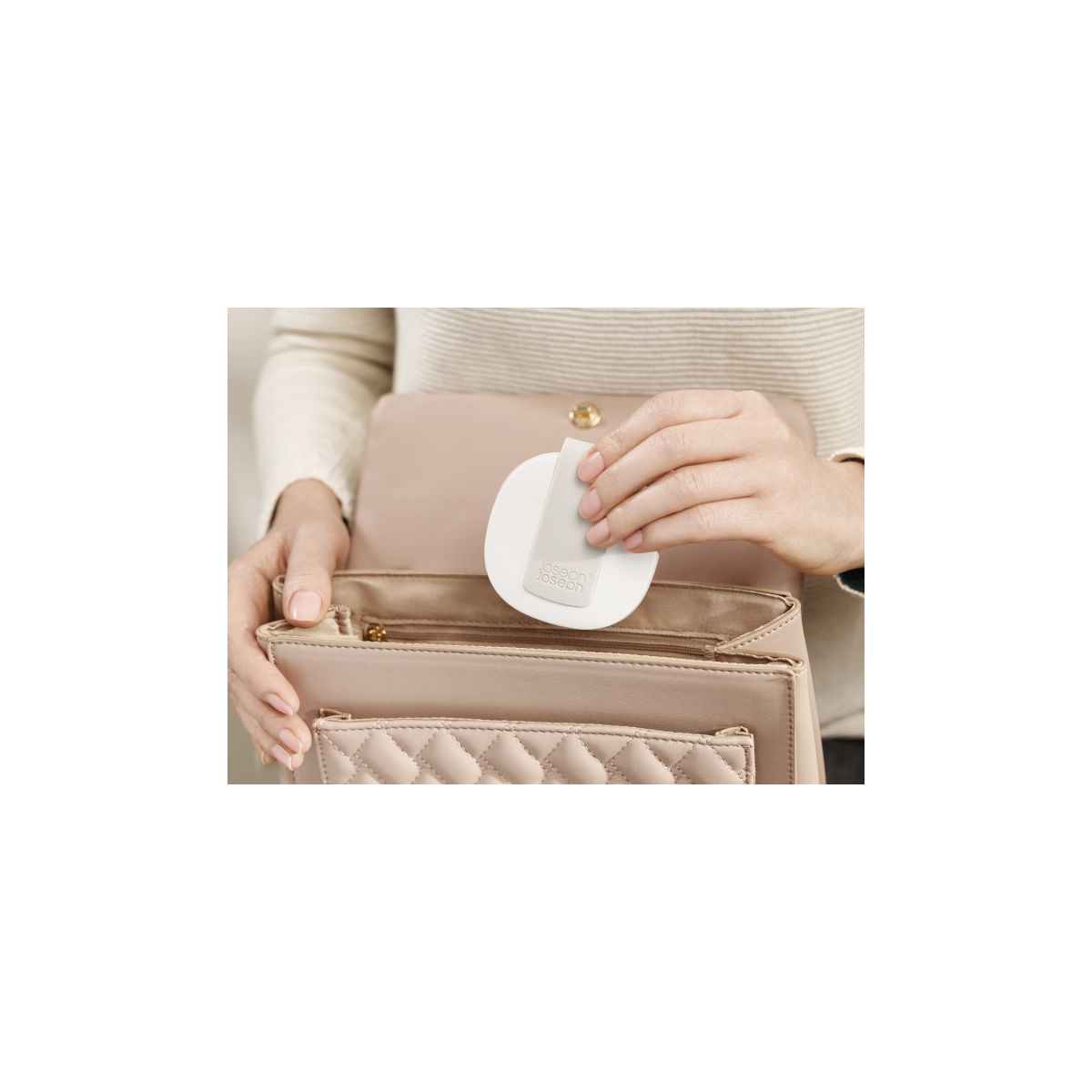 - Der Riemen bietet Platz für kleine Make-up-Accessoires wie Lippenstift oder Mascara