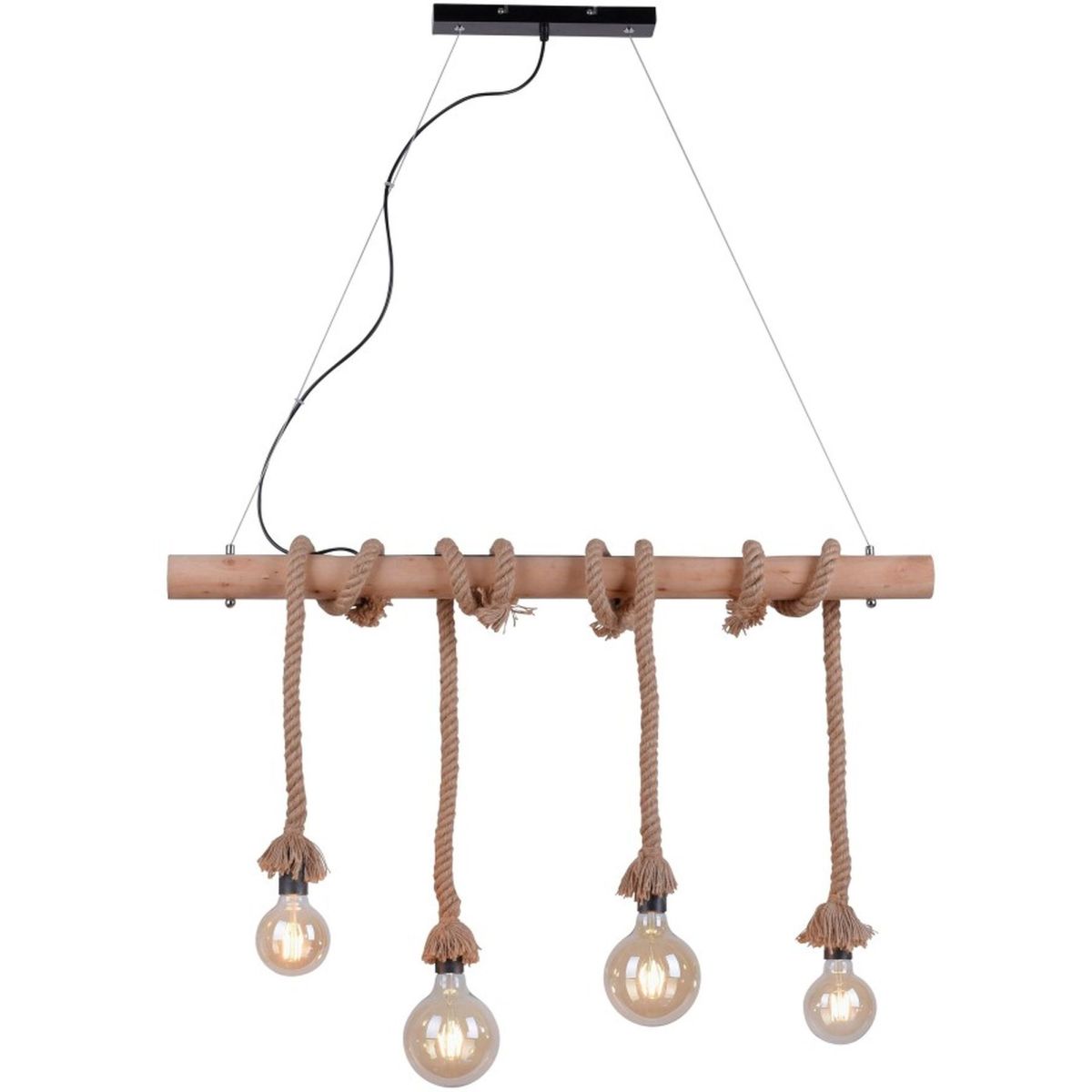 Just Light Rope Pendelleuchte 4x15 W schwarz-holz-braun 15483-18