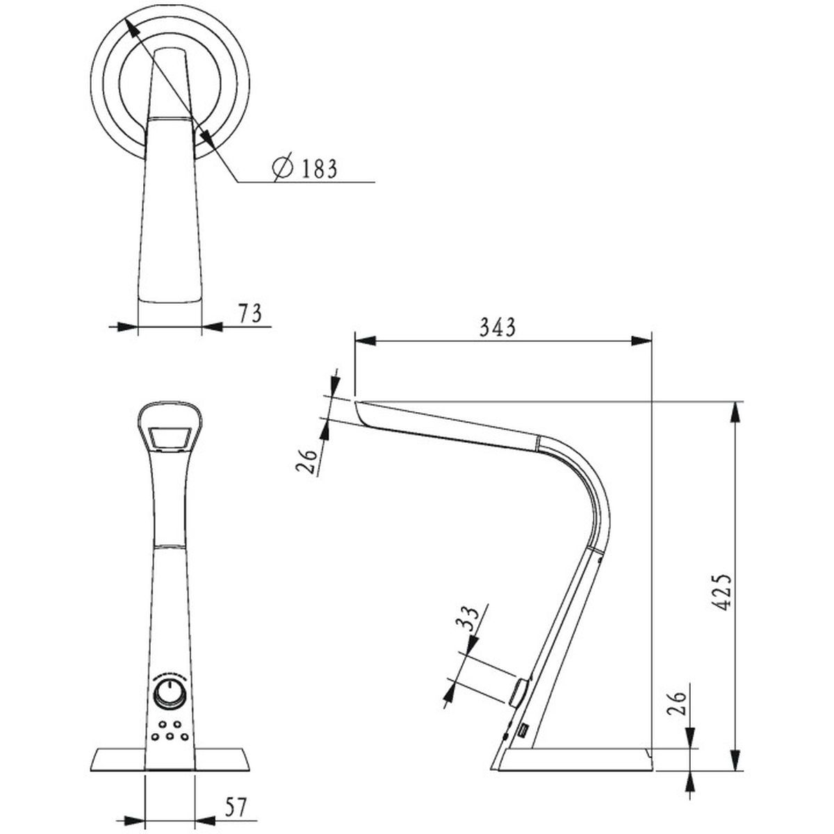 - stufenlose Dimm- und Helligkeitsregelung