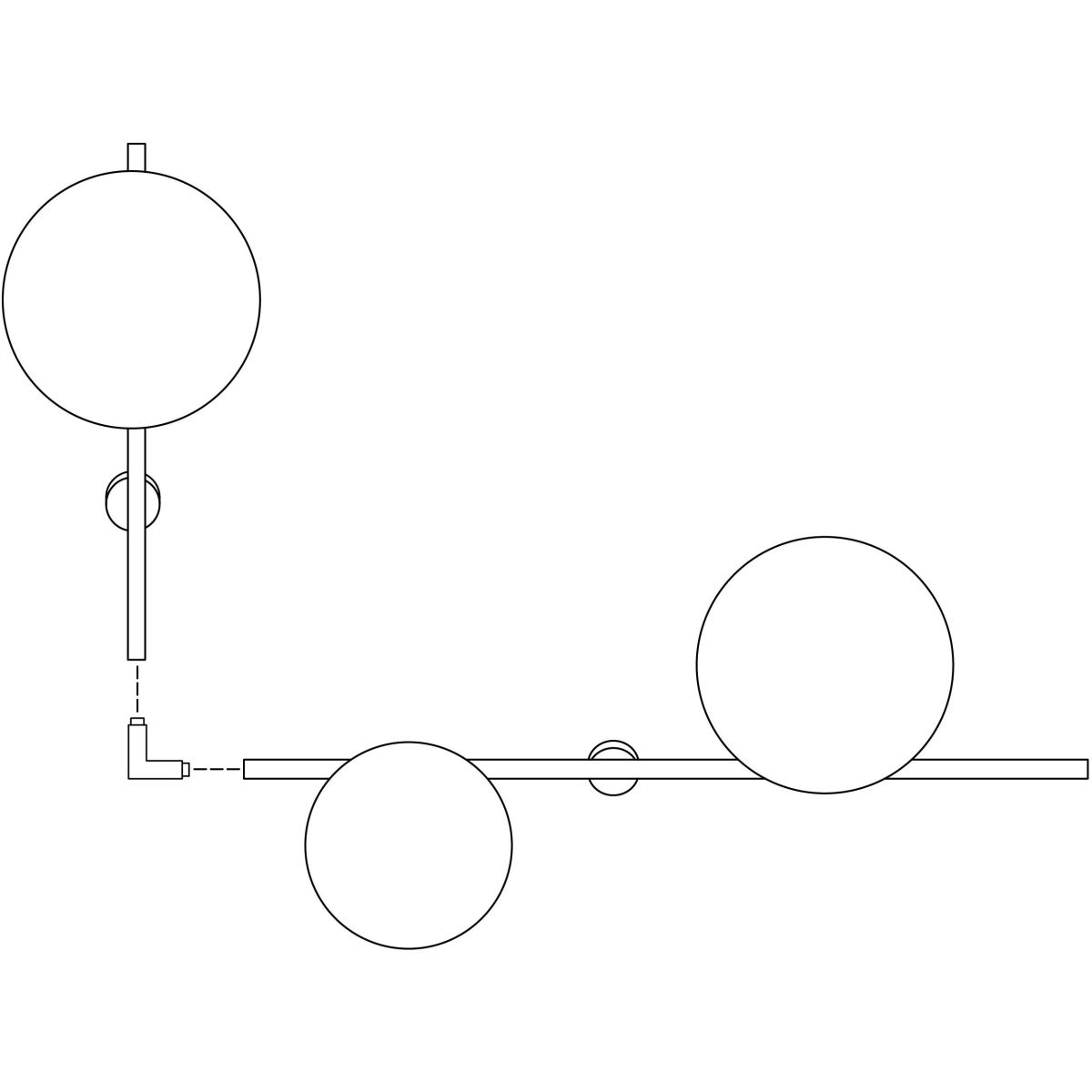 - Der Winkelverbinder ermöglicht die rechtwinklige Verbindung von Wandleuchten mit drei, zwei oder einer Lichtquelle, die auf einem Rohr angebracht sind