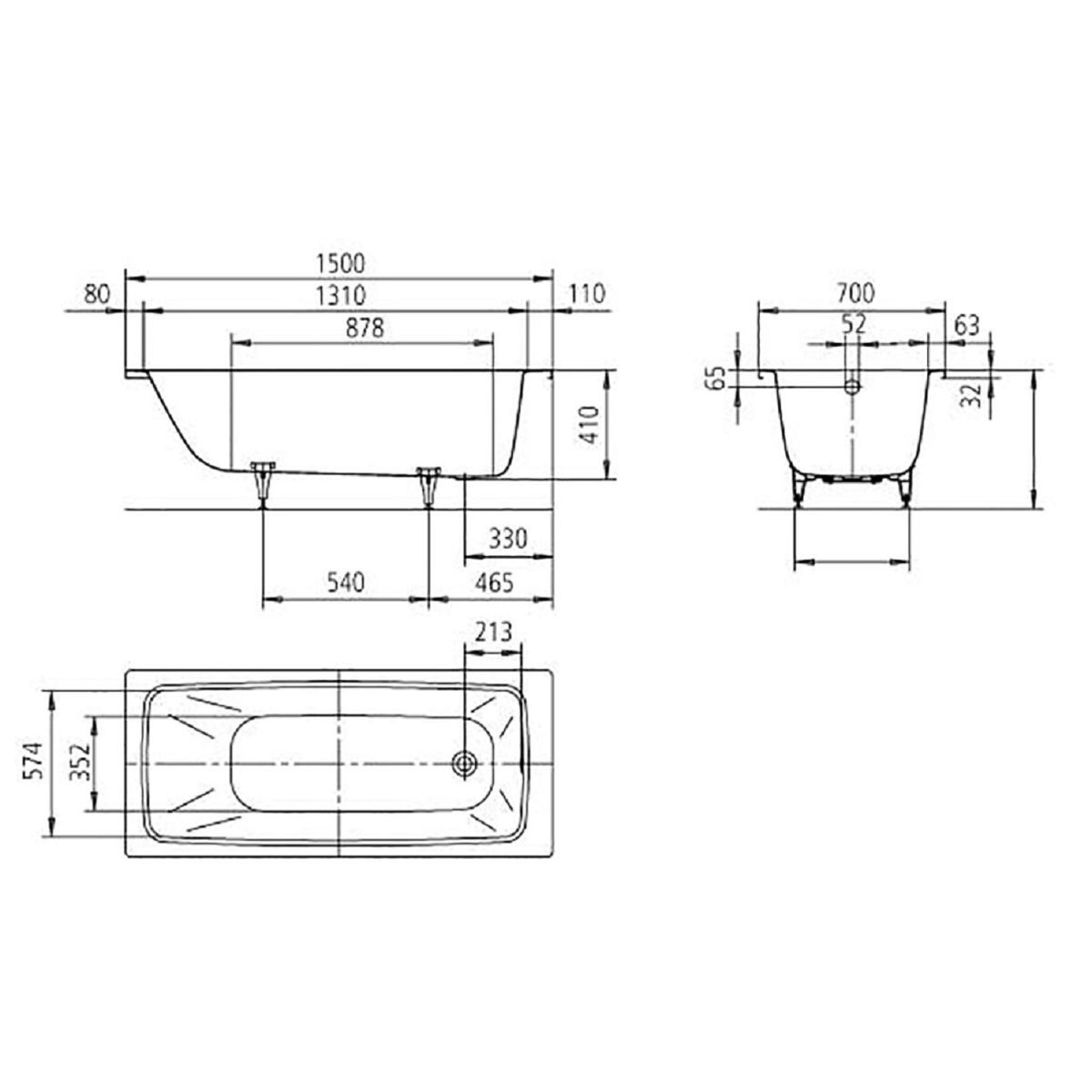 Kaldewei Cayono Star Rechteckige Badewanne 150x70 cm weiß 275300010001