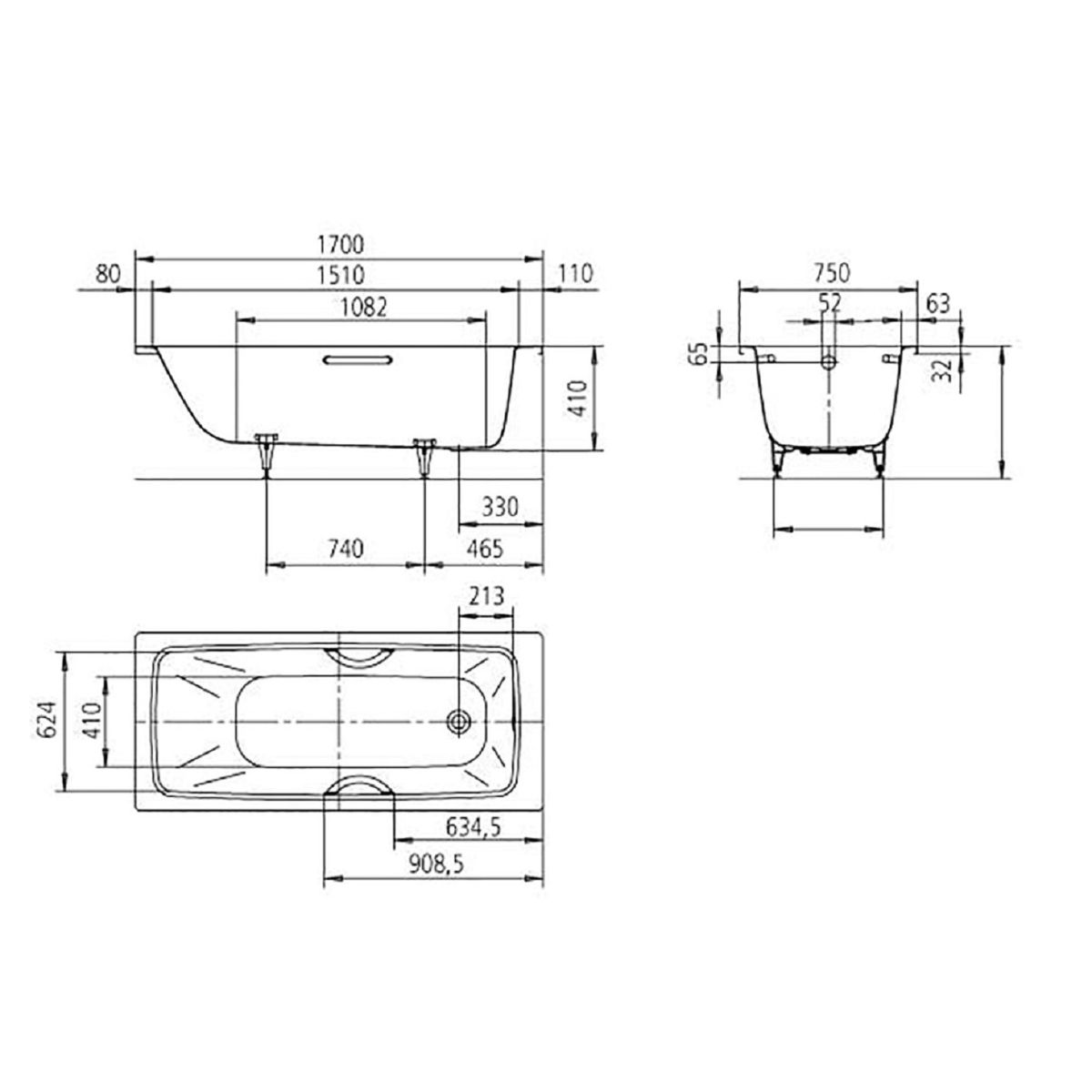 Kaldewei Cayono Star Rechteckige Badewanne 170x75 cm weiß 275600010001