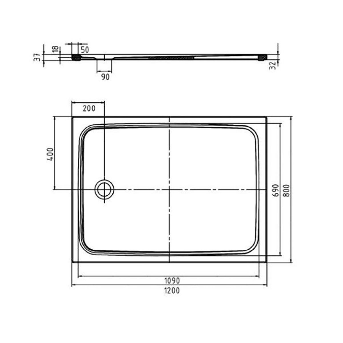 - Gesamthöhe der Duschwanne mit Träger: 3,7 cm
