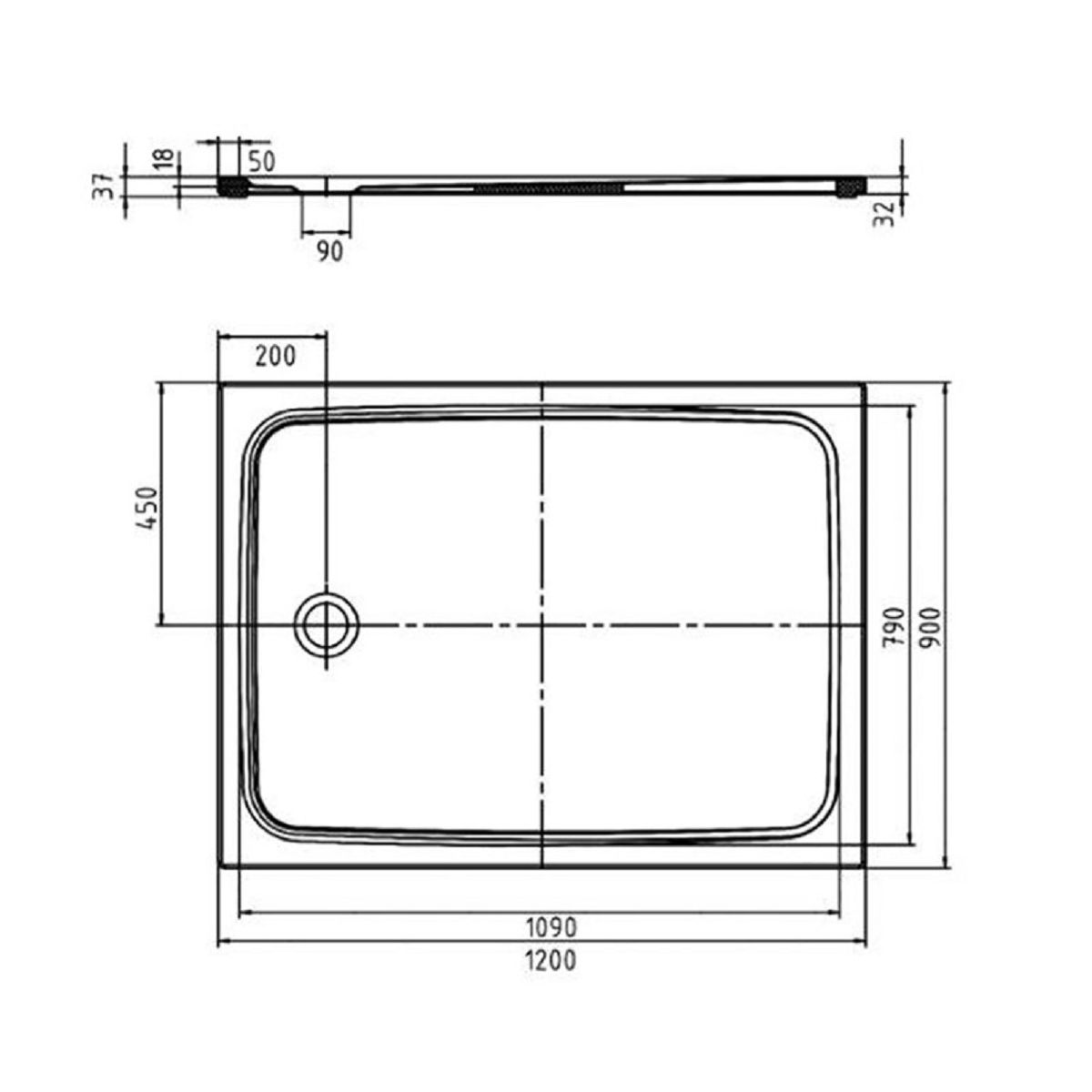 - Gesamthöhe der Duschwanne mit Träger: 3,7 cm