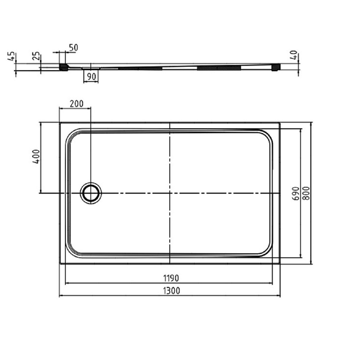- Gesamthöhe der Duschwanne mit Träger: 4,5 cm