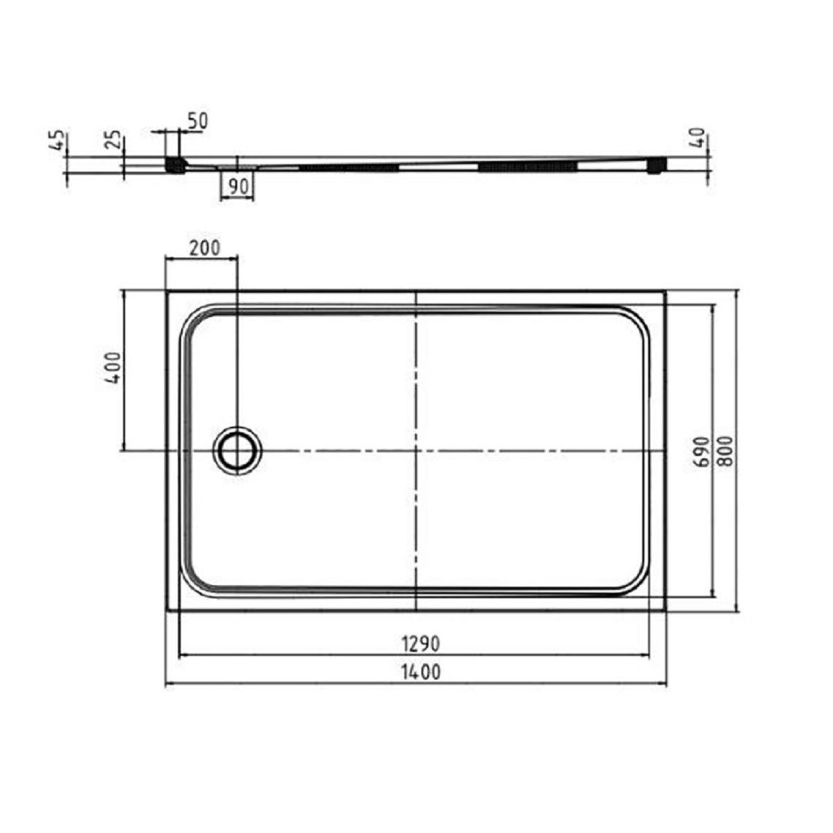 - Gesamthöhe der Duschwanne mit Träger: 4,5 cm