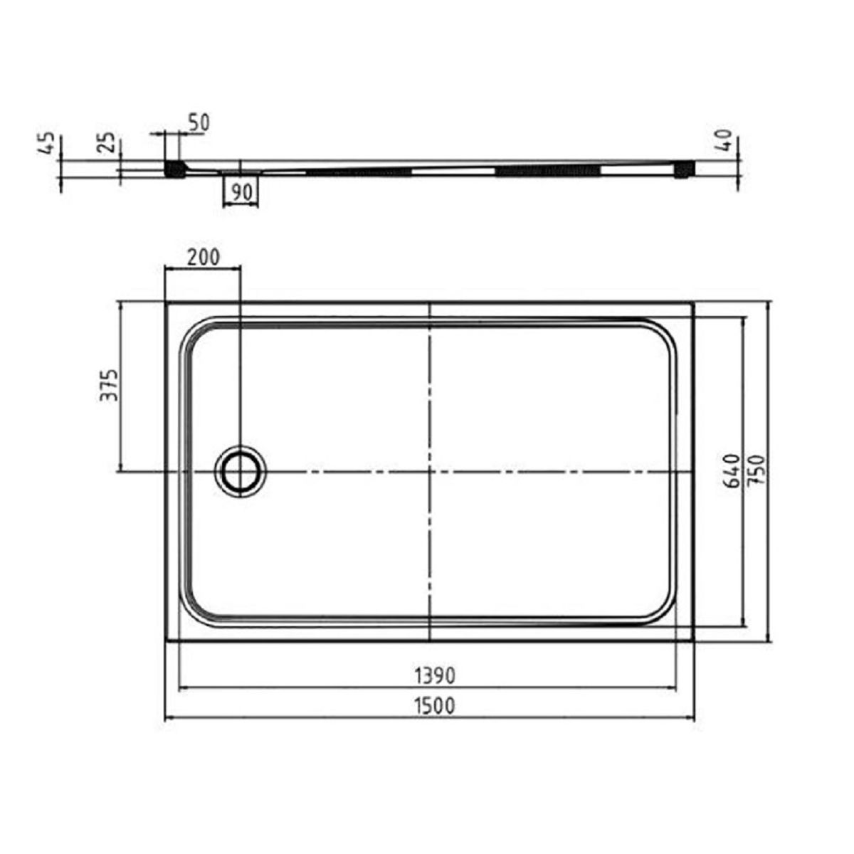 - Gesamthöhe der Duschwanne mit Träger: 4,5 cm