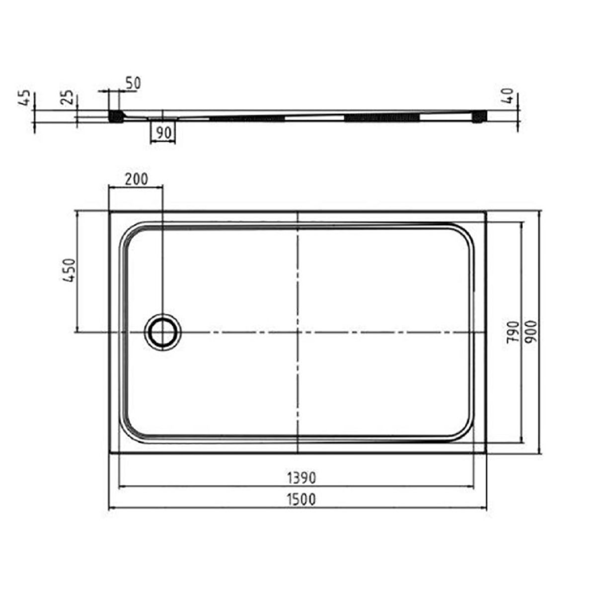 - Gesamthöhe der Duschwanne mit Träger: 4,5 cm