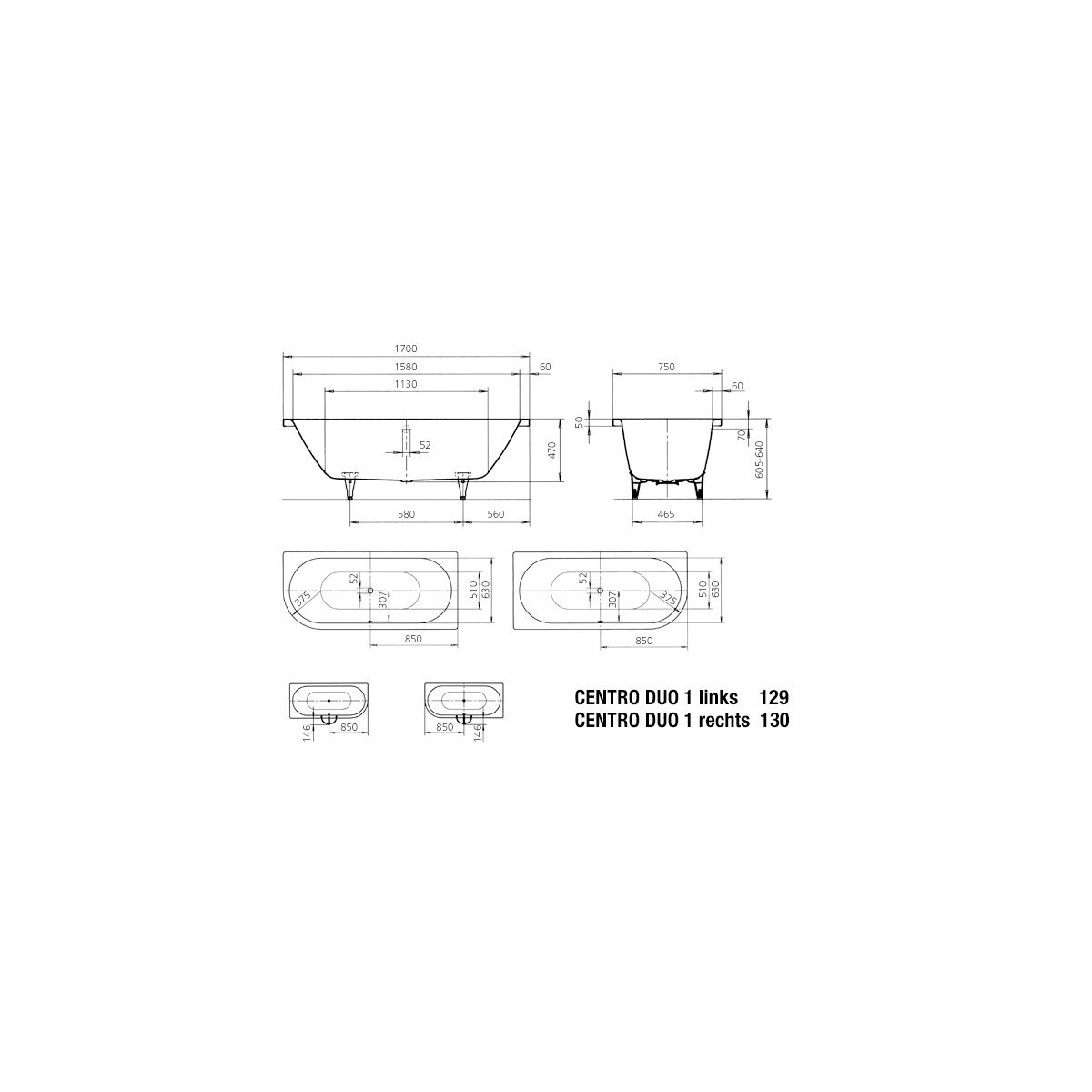 Kaldewei Centro Duo 1 Rechteckige Badewanne 170x75 cm weiß 282910110001