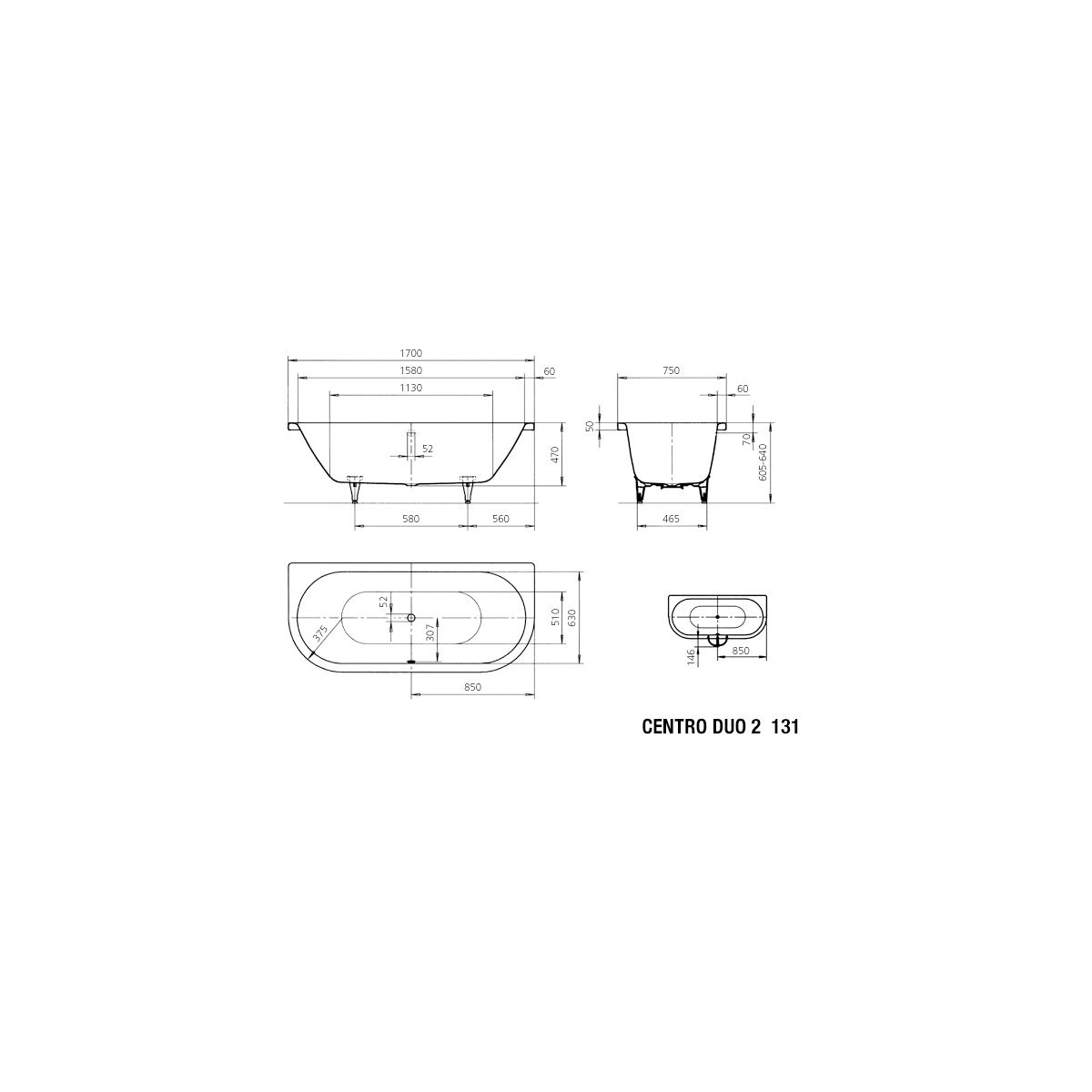 Kaldewei Centro Duo 2 Rechteckige Badewanne 170x75 cm weiß 283100010001