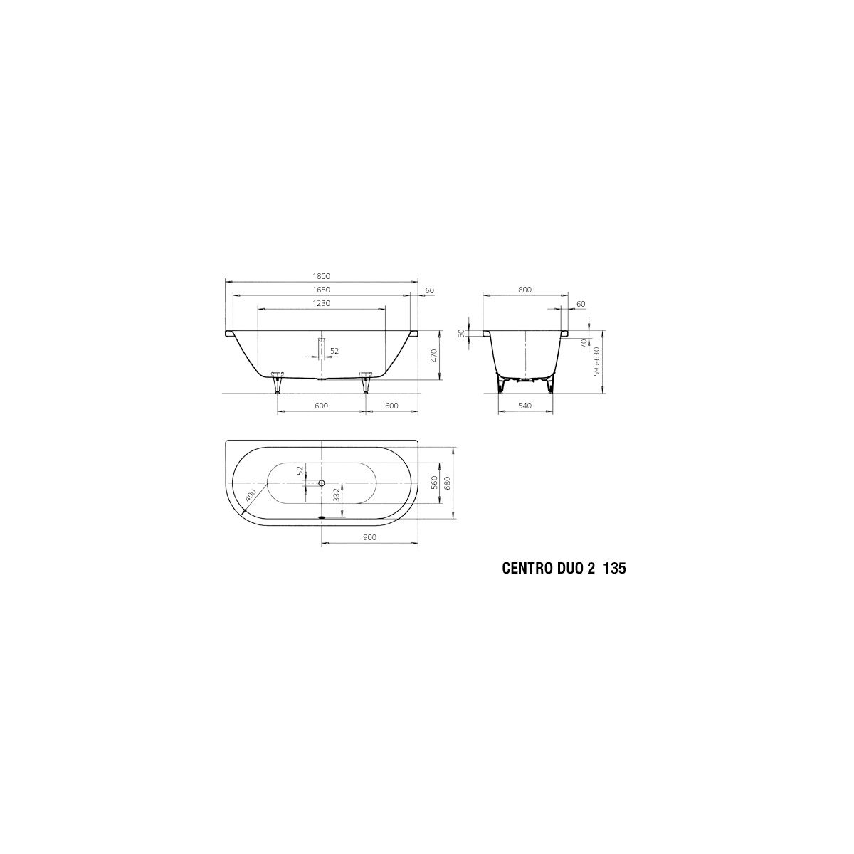 Kaldewei Centro Rechteckige Badewanne 180x80 cm weiß 283500010001